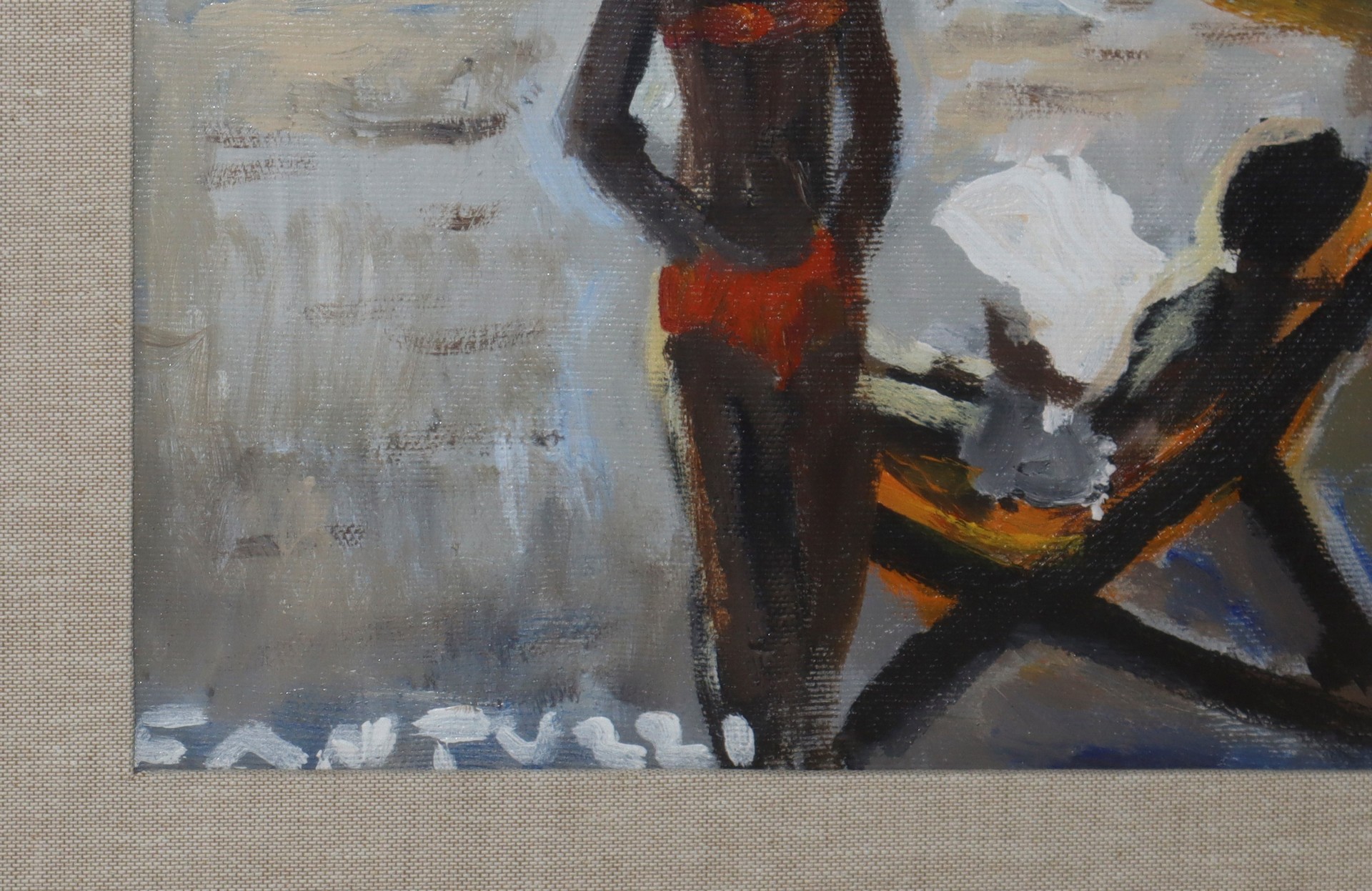 Eliano Fantuzzi (1909-1987) - Donne in spiaggia, 1985 cm 35,5x25,5, in cornice 59x49 Dipinto ad olio su tela Certificato di autenticità su fotografia
