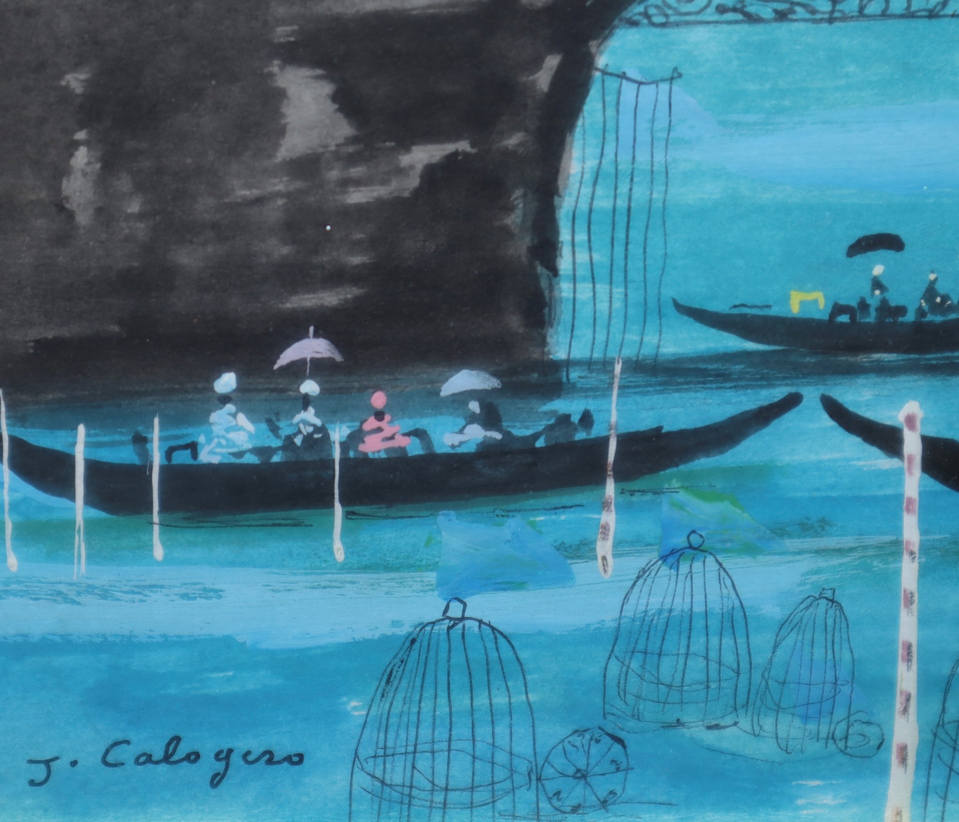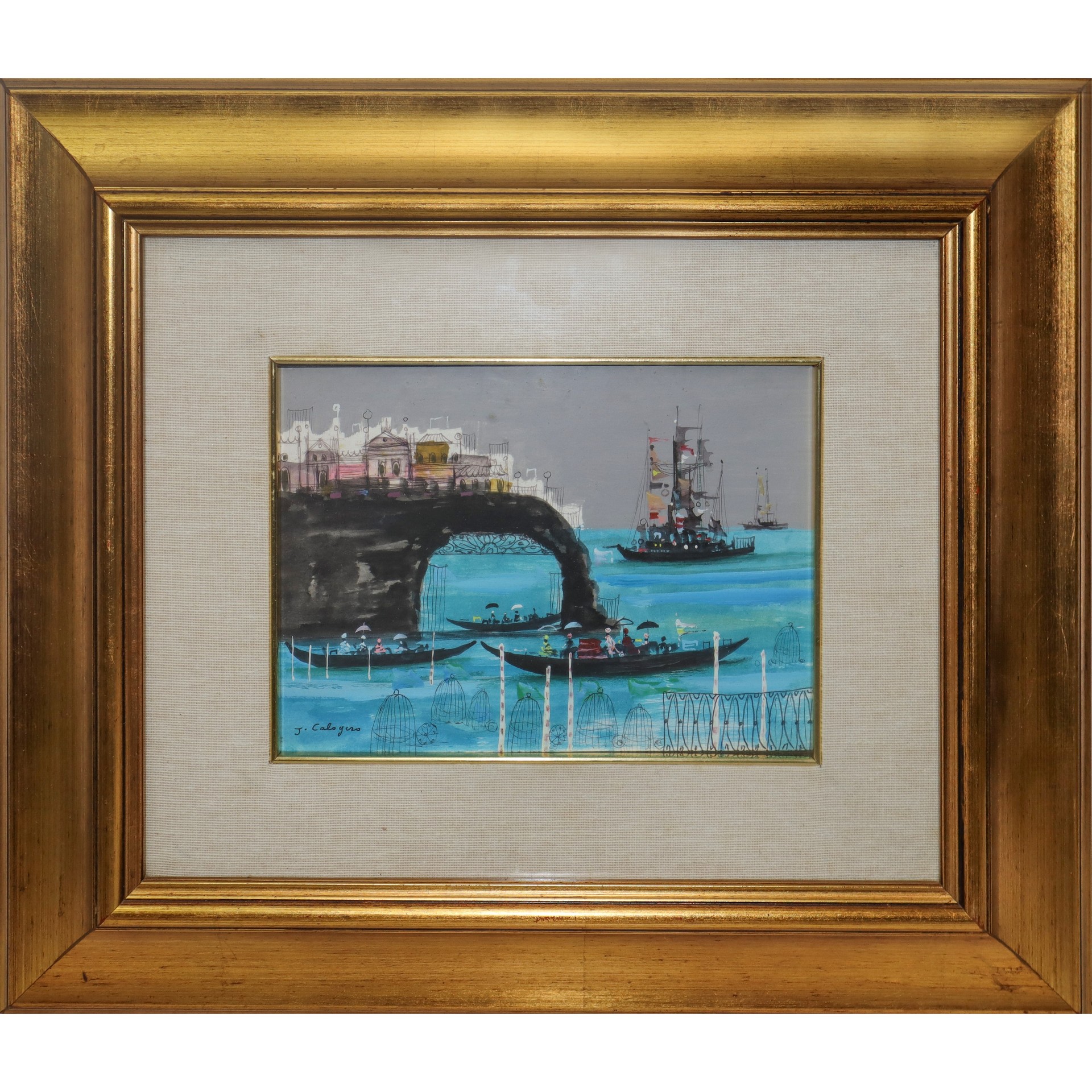 Jean Calogero (Catania 1922-Acicastello 2001) - Paesaggio con gondole