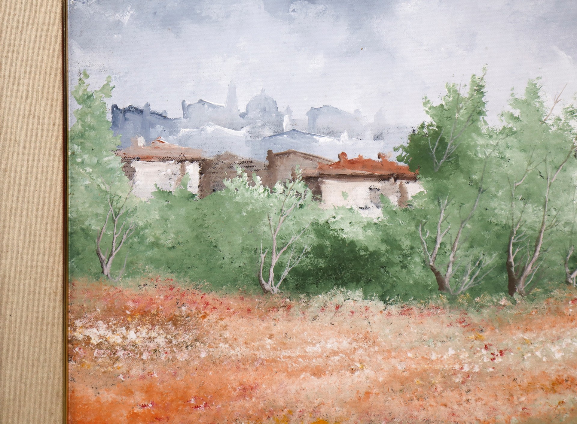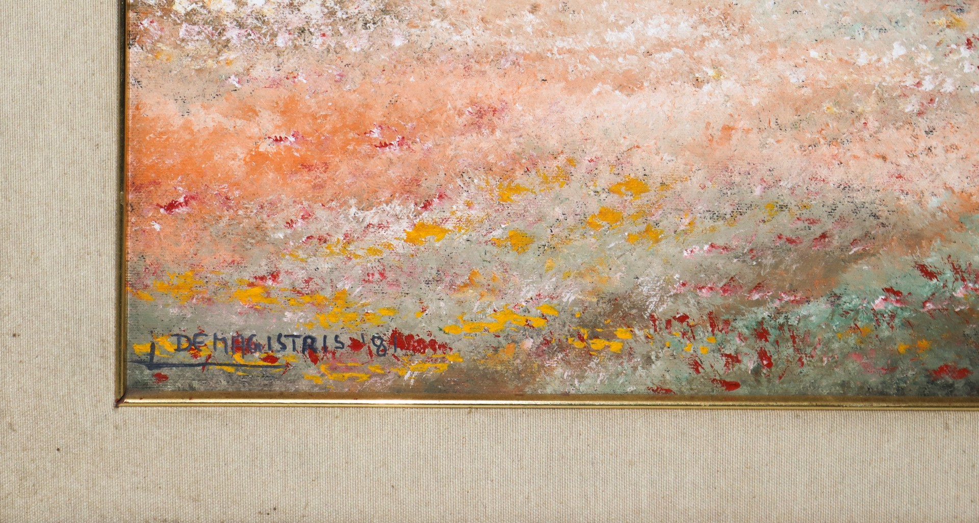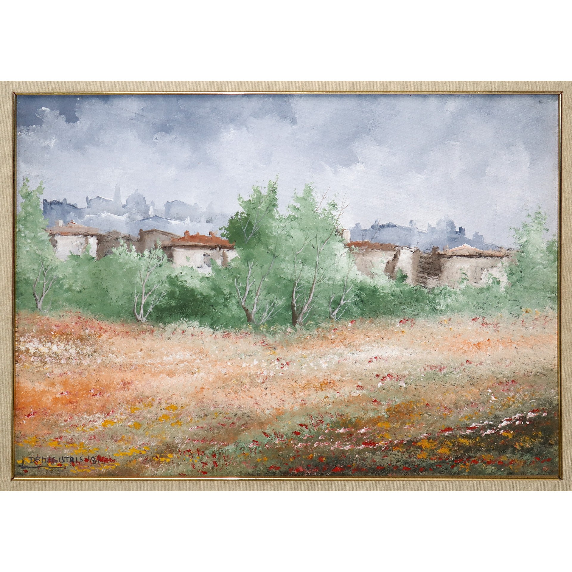 Leonardo De Magistris (Roma 1933-2010) - Paesaggio con alberi e case, 1981 cm 50x70 in cornice cm 65x 85 Olio su tela Firmato in basso a sinistra