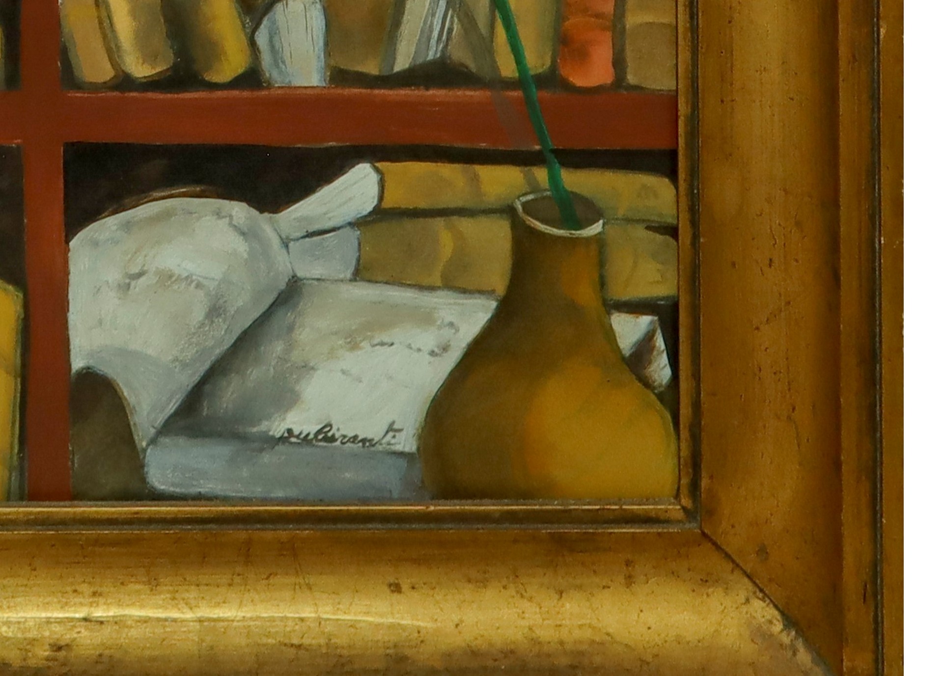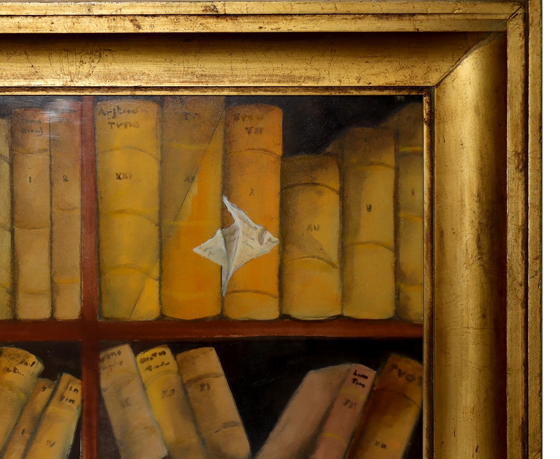 G. Pulvirenti. Tanti Libri e un solo fiore cm 50x70, in cornice cm 82x62 Olio su cartone Firmato in basso a destra Pulvirenti. Firmato e titolato sul retro