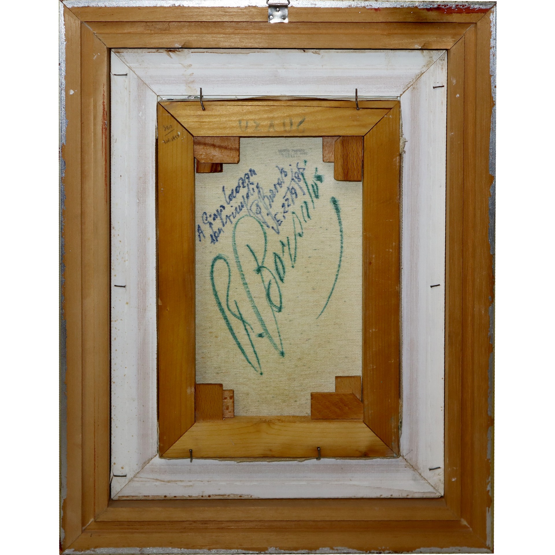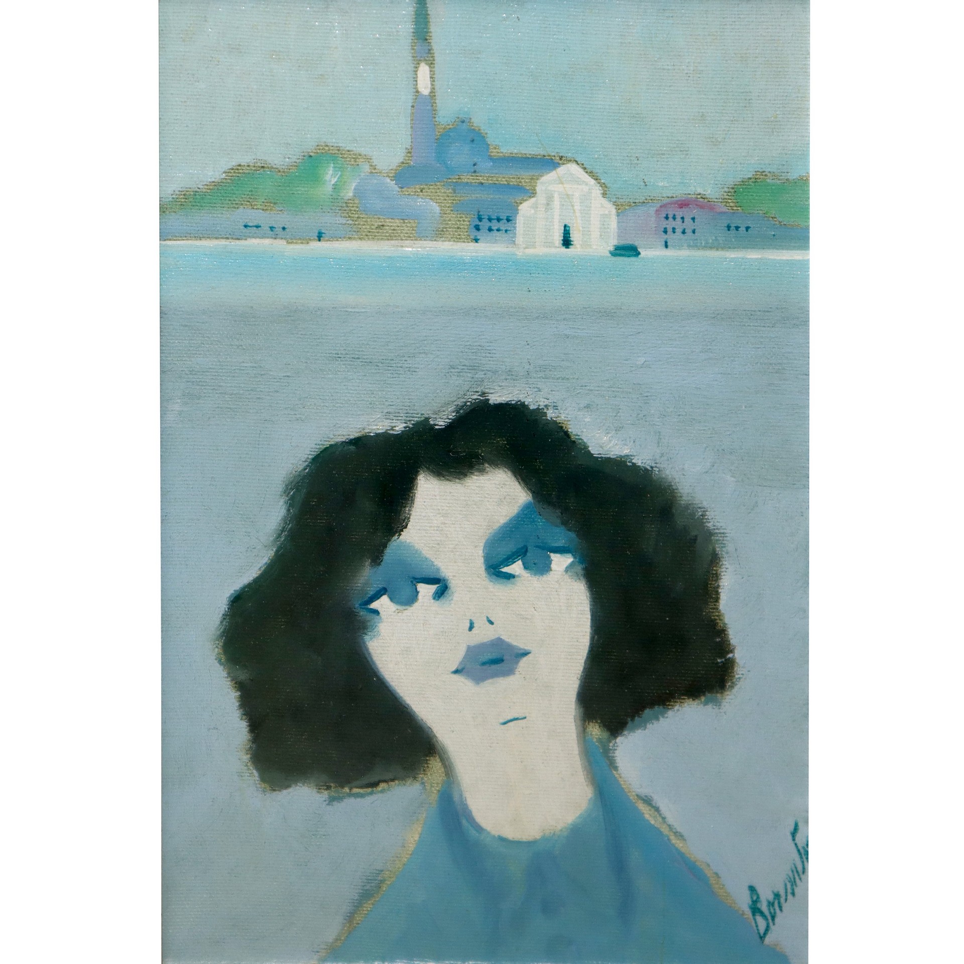 Renato Borsato (1927) - Donna a Venezia, 1985 Cm 30 x 20 in cornice Cm 47 x 37 Olio su tela Firmato sul fronte in basso a destra, firmato e dedicato al retro