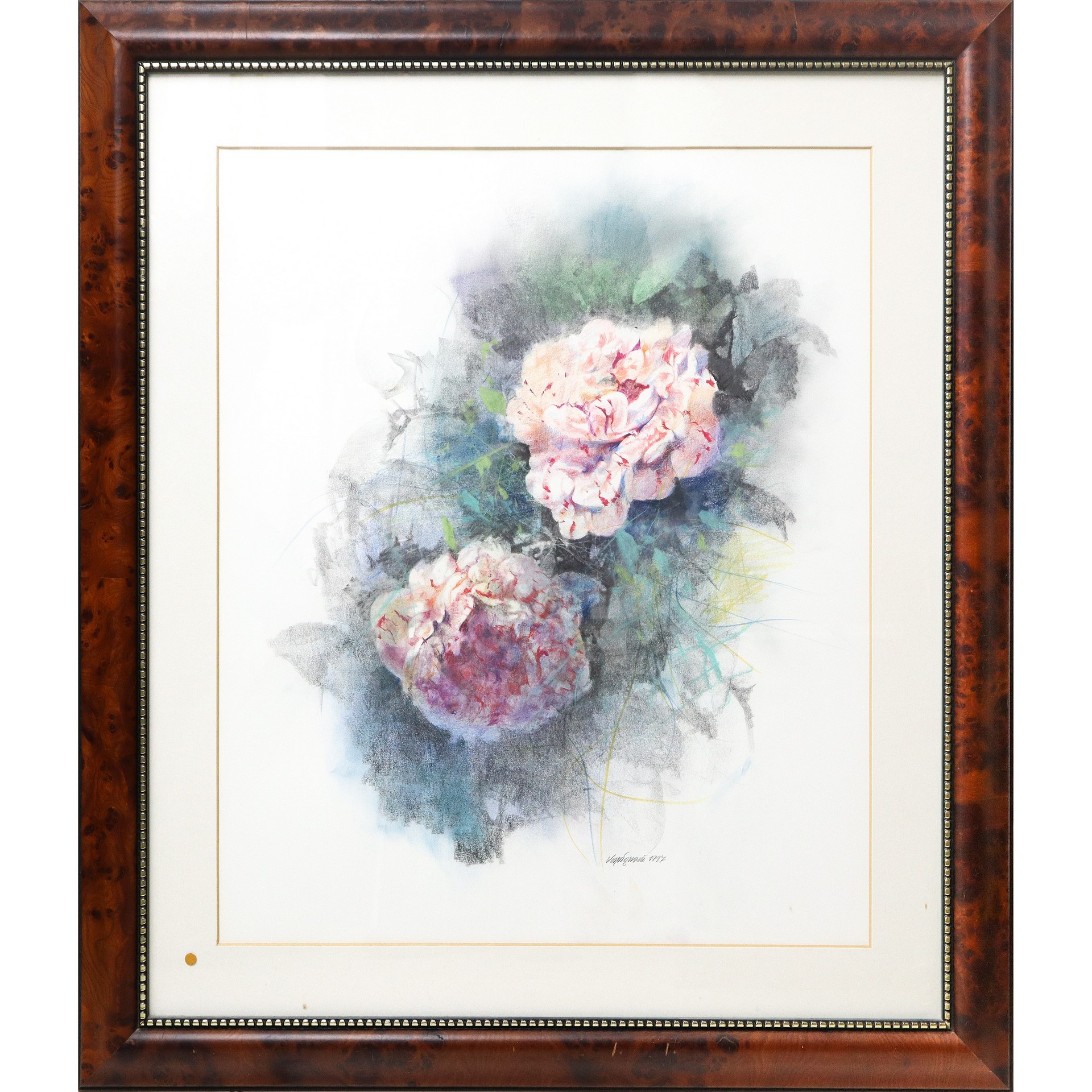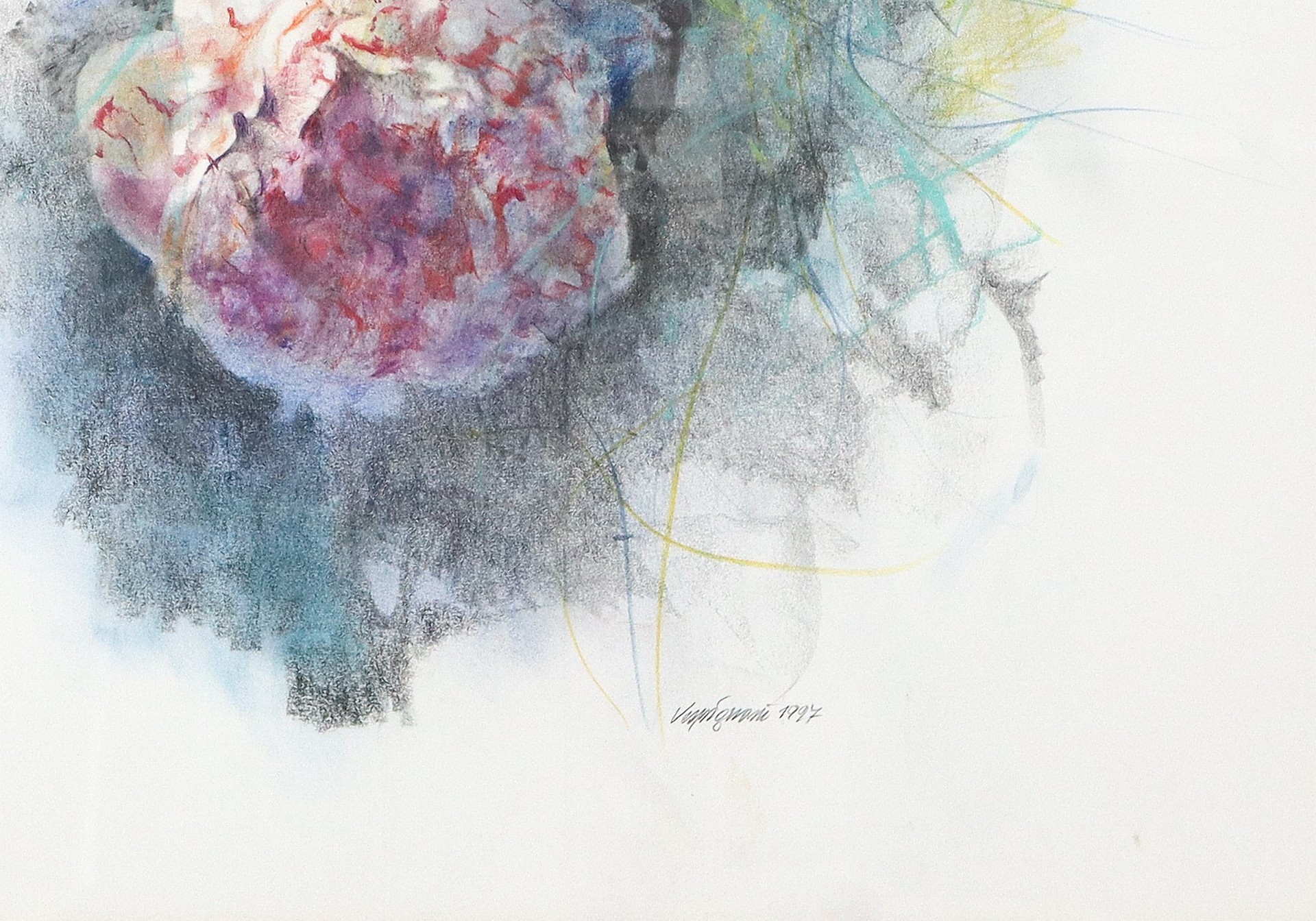 Renzo Vespignani (Italian 1924-2001) - Fiori, 1997 Cm 66,5x56,5, in cornice cm 92x82 Gouache su cartoncino Firmato in basso e datato 97. Certificato su fotografia  di Renzo Vespignani