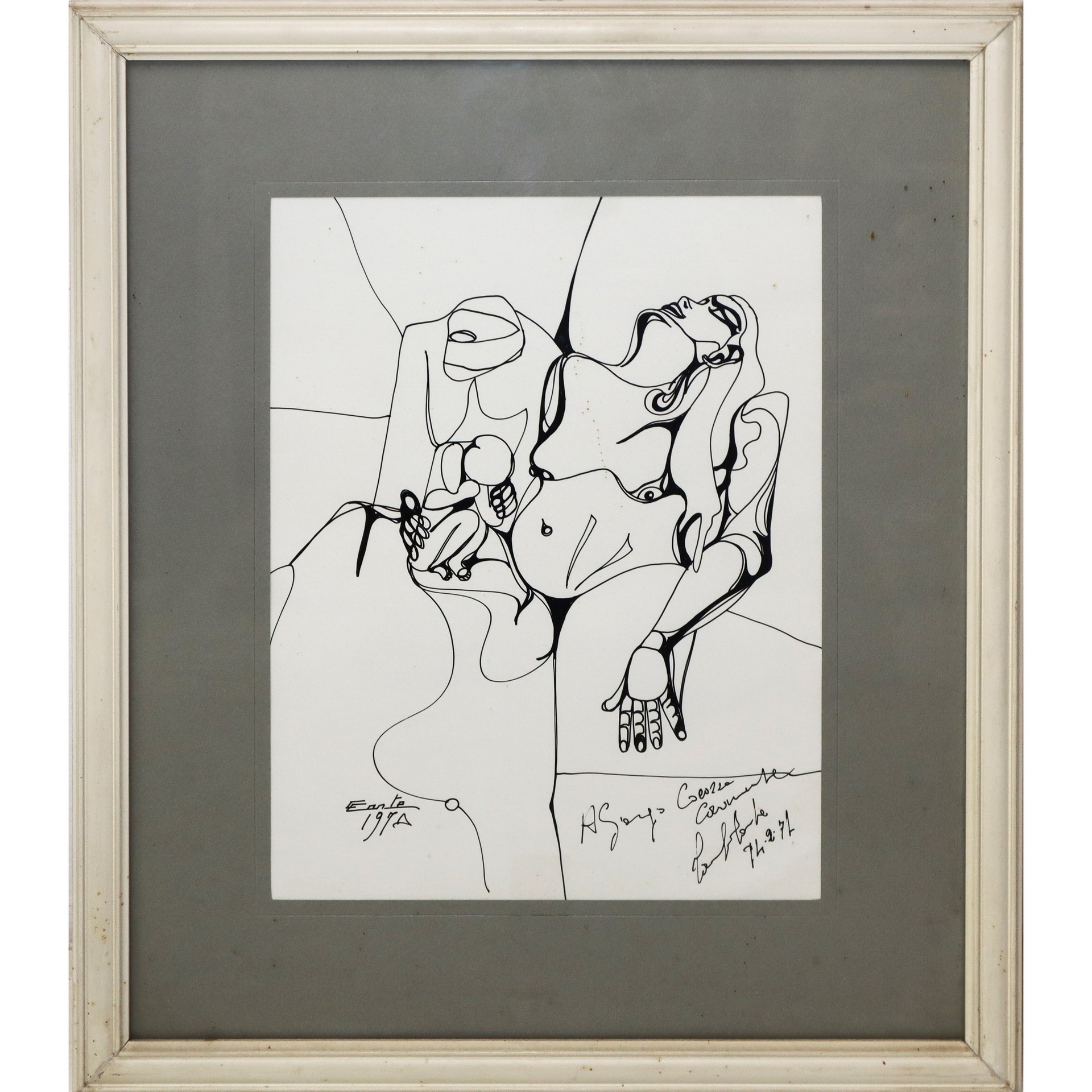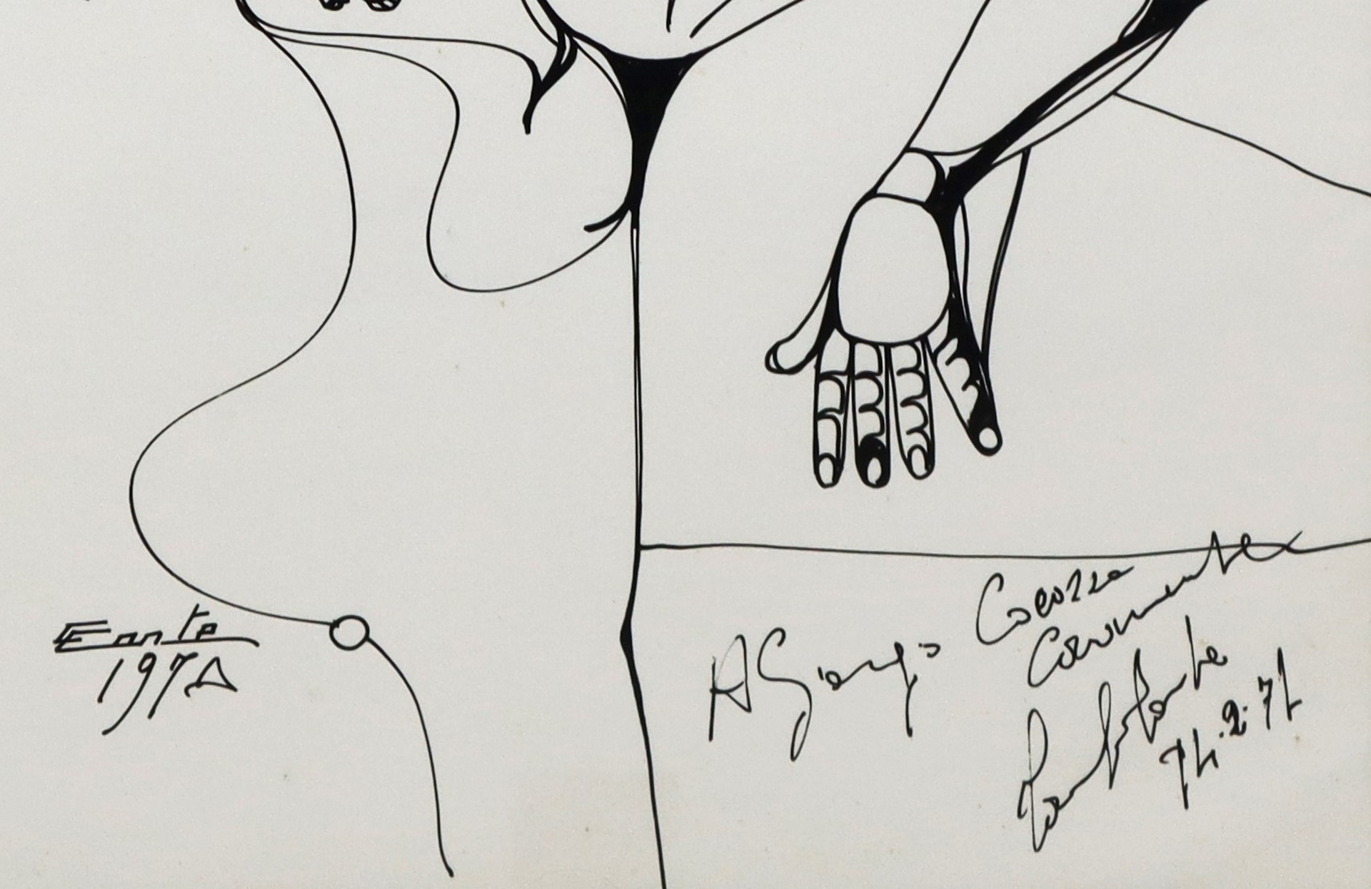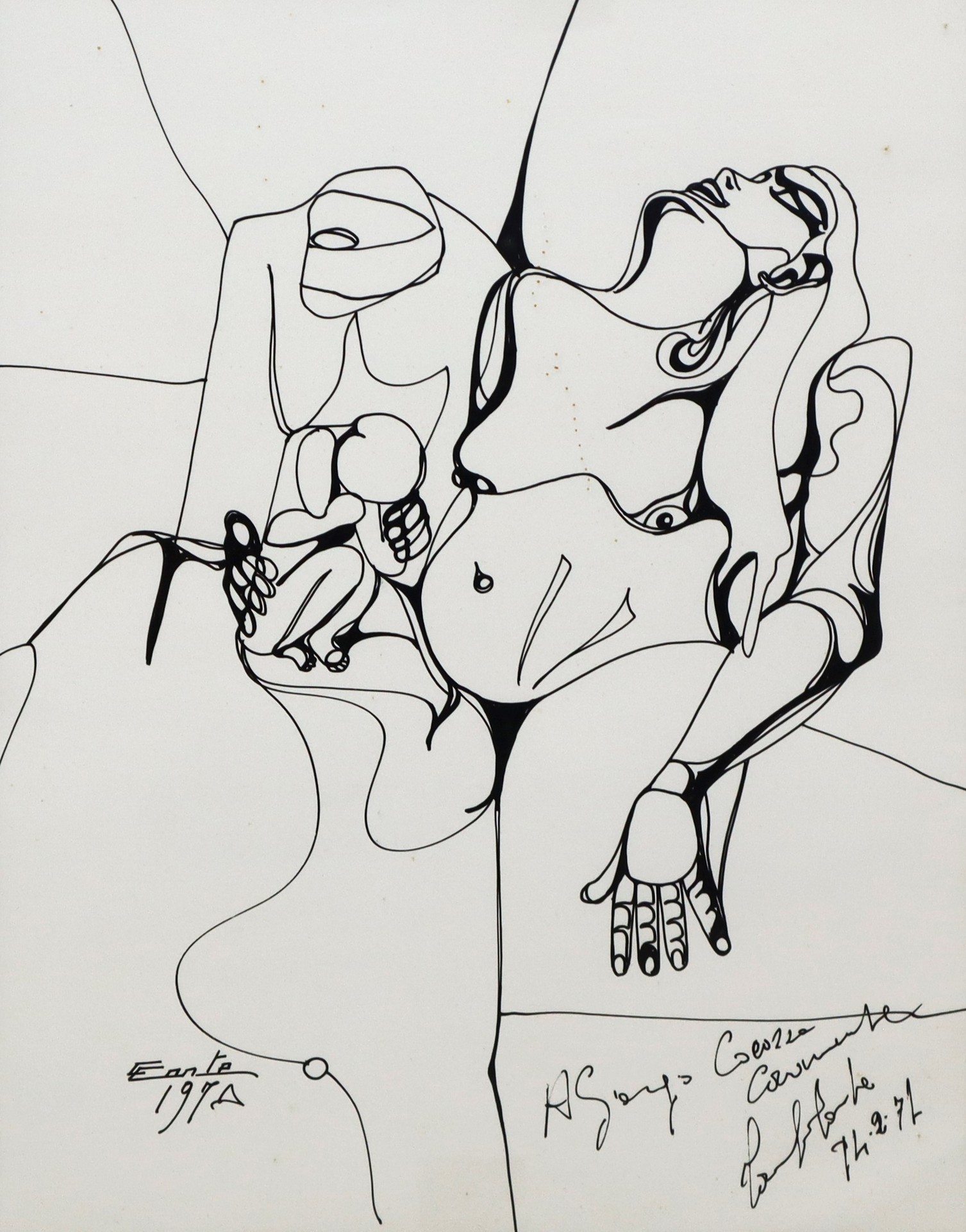 Carmelo Conte (Latiano 1946) - Maternità, 1970 29,5x22,5 in cornice cm 46x39 China e inchiostro al nero su cartoncino Firmato e datato in basso a sinistra, dedica in basso a destra