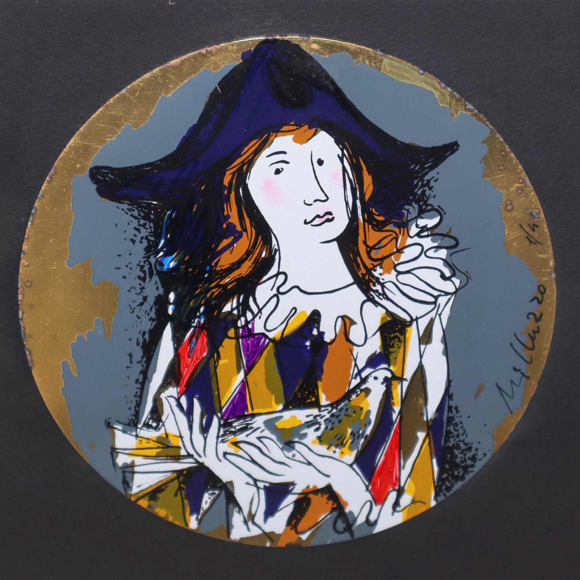 Sebastiano Milluzzo (Catania 1915-Catania 2011) - Giovane donna, 1983 D cm 12, in cornice 41 x 41 Smalto su rame