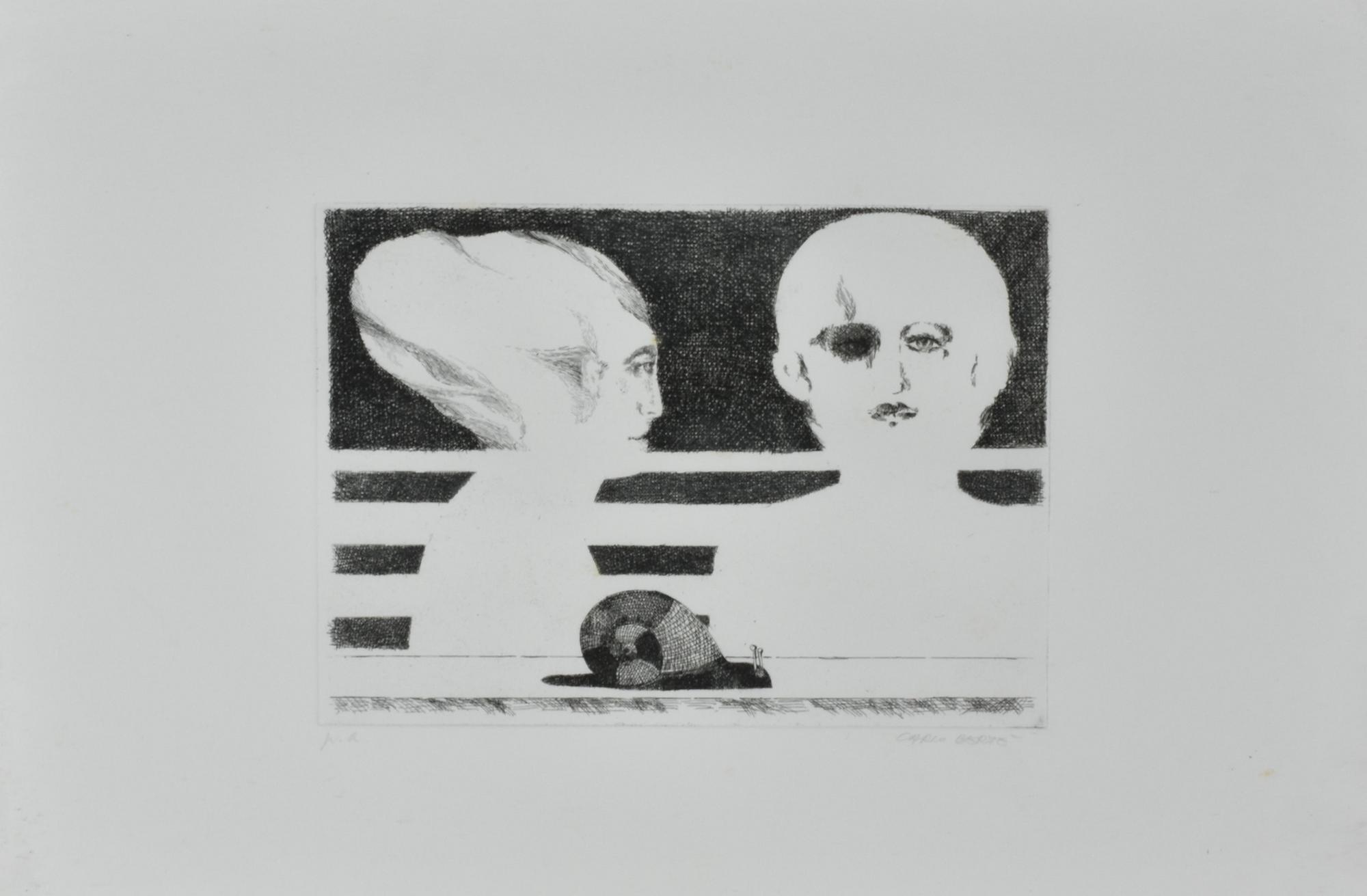 Carlo Berte' SENZA TITOLO incisione su carta, cm 34x49 (lastra cm 18x25)...