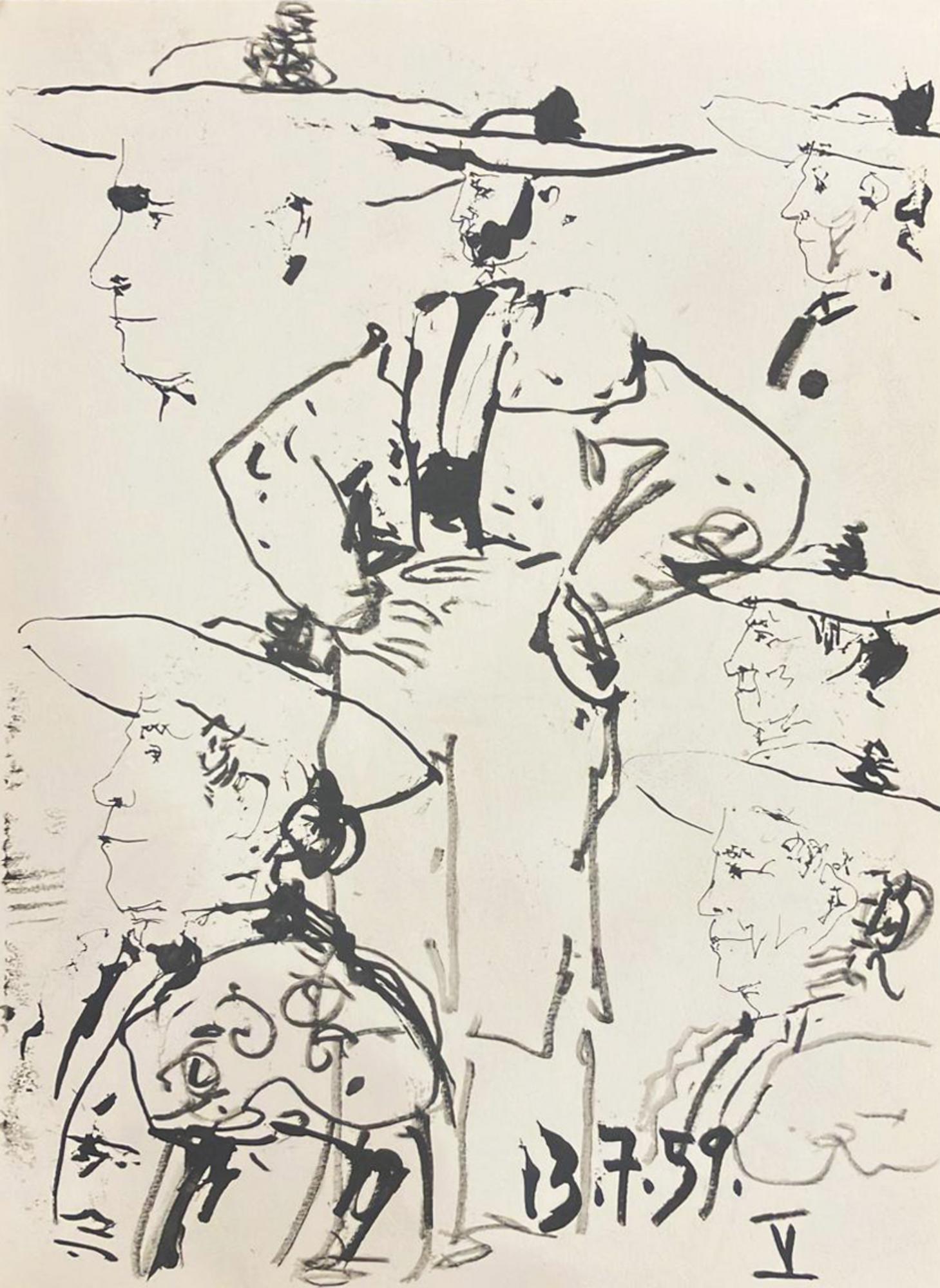 After Pablo Picasso TOROS Y TOREROS stampa tipografica, cm 37x26,5