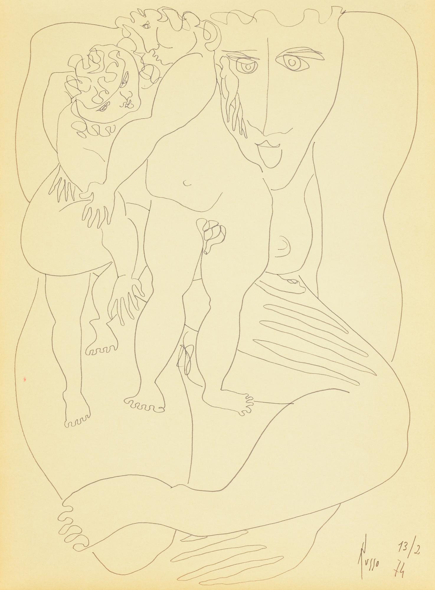 Russo MADRE CON BAMBINI pennarello su carta, cm 40x30 firma e data eseguito...