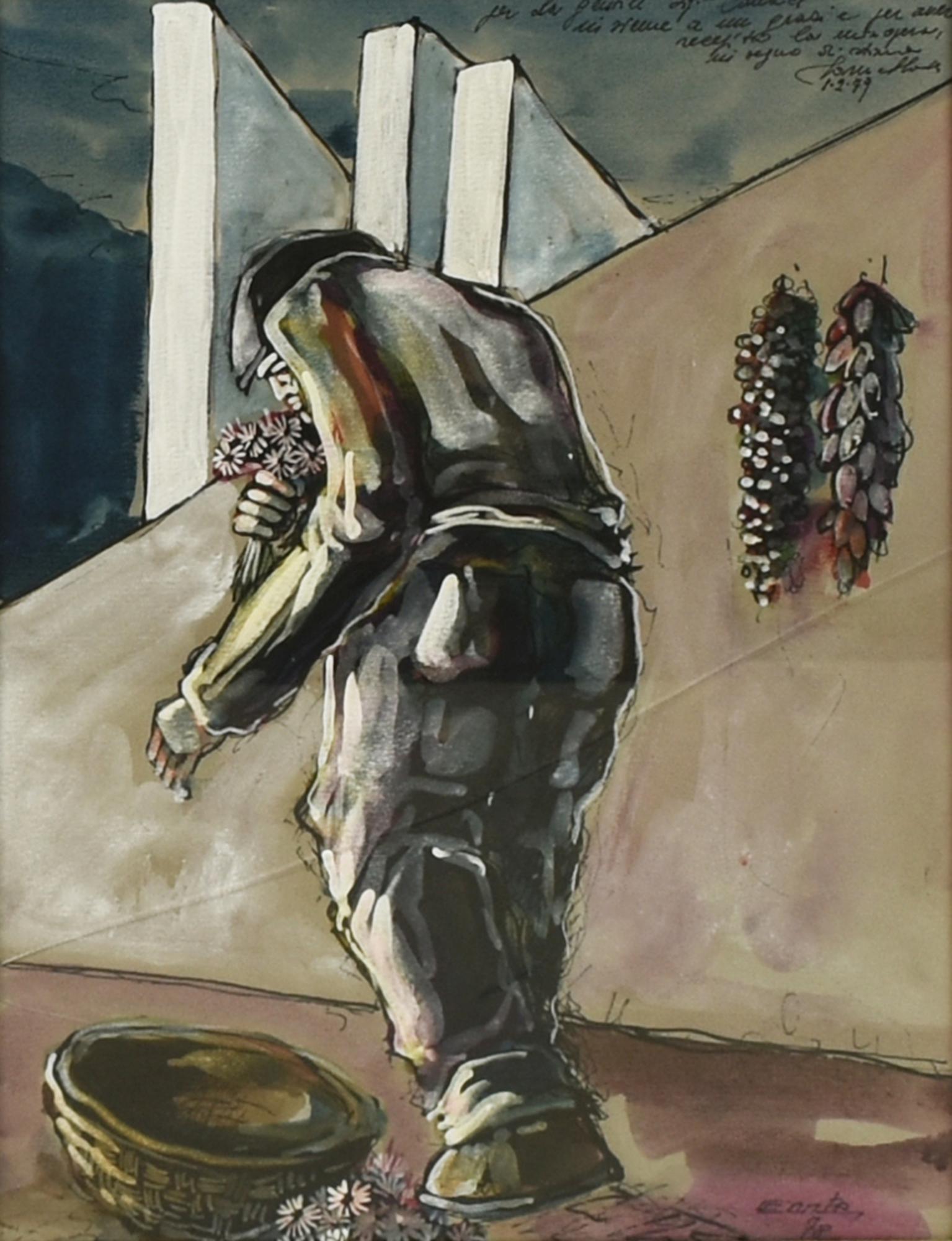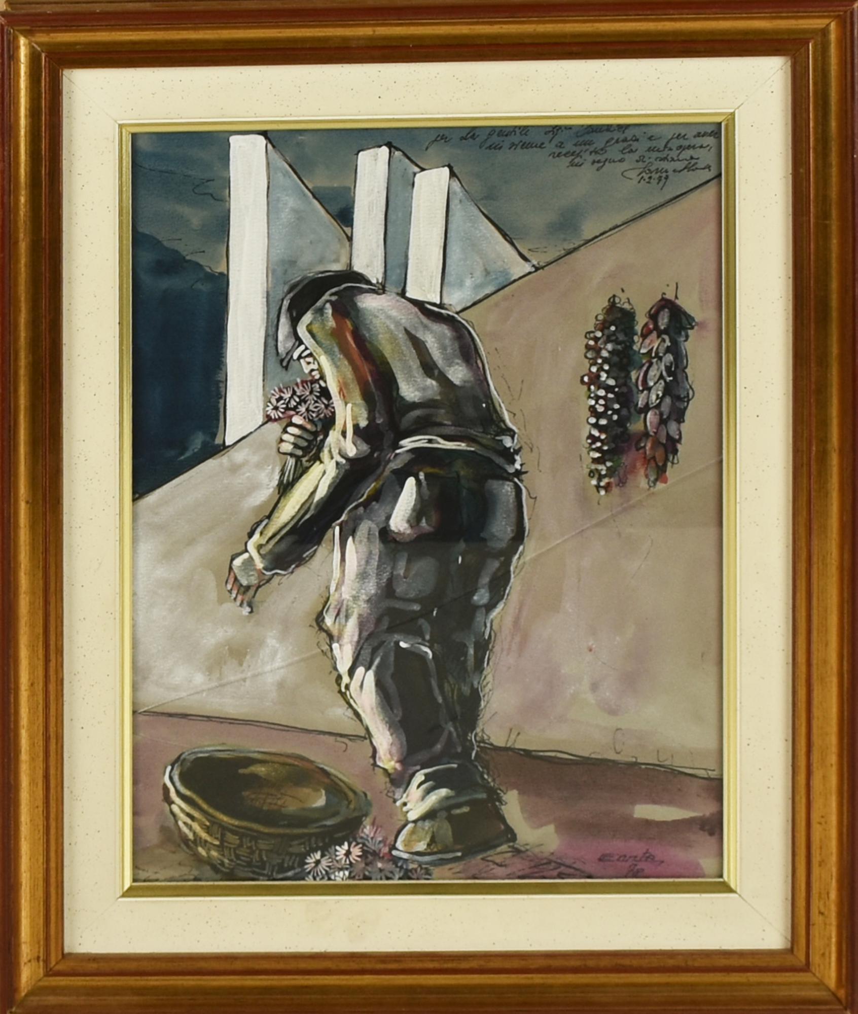 C. Conte IL RACCOGLITORE, 1978 tecnica mista su carta, cm 33x24 firma, data e...