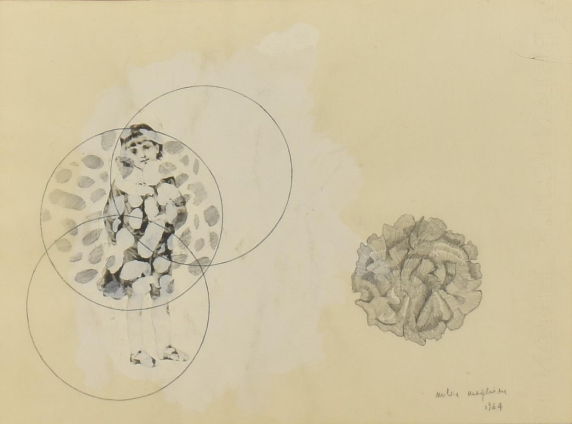 Milvia Maglione BAMBINA lapis, tempera e collage su carta, cm 25x33,5 firma e...
