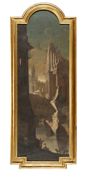 Pietro Paltronieri "Capriccio architettonico" tempera su tela sagomata (cm 207,5