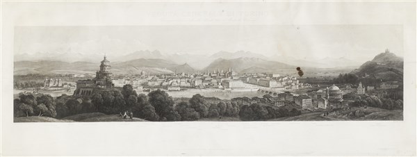 Artista del secolo XIX "Veduta di Torino" incisione all'acquaforte all'acquati