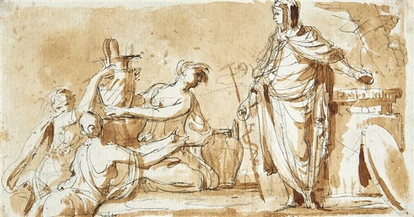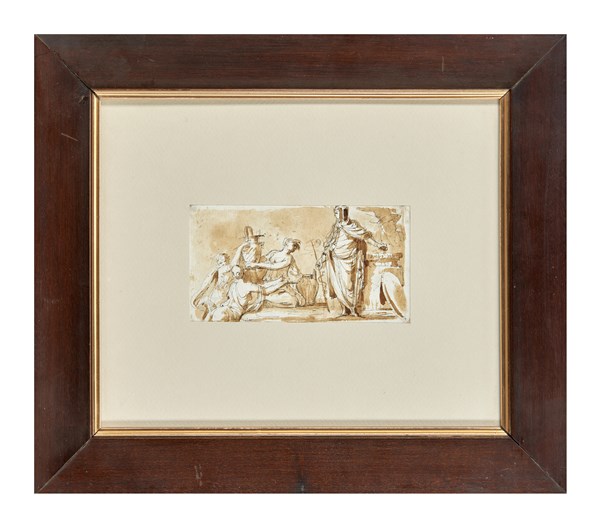 penna e inchiostro bruno acquerellato in bruno con tracce a matita (mm 75x145)