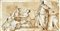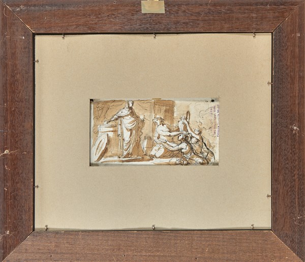 Artista del secolo XVIII "Scene mitologiche" foglio disegnato al recto e verso