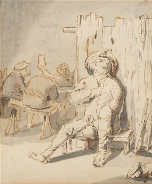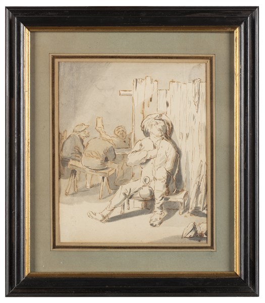 Lotto composto da: -Copia da Adriaen van Ostade, "Scena di genere" penna e inc