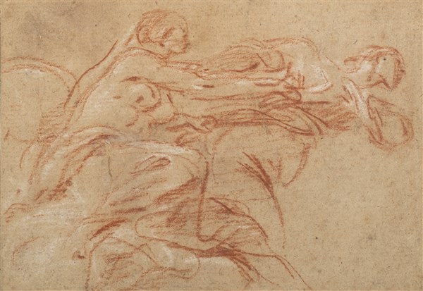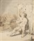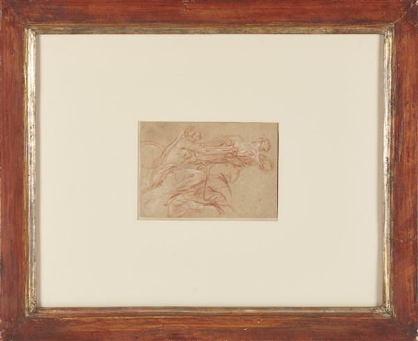 - Artista francese del secolo XVIII, "Studi di figure" sanguigna e rialzi a gessetto bianco su carta grigia (mm. 112x164) in cornice (difetti)