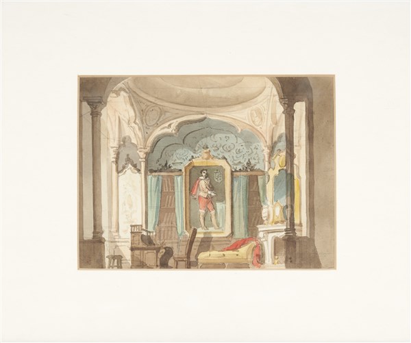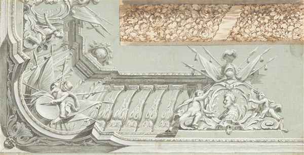 Lot comprising two decorations studies, pen, brown ink and watercolor, (mm 185x140; 165x315 visibile), framed