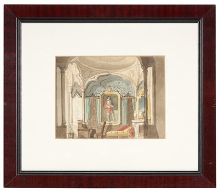 Lotto composto da due studi di decorazione a penna, inchiostro bruno e acquerello, (mm 185x140; 165x315 al visibile), in cornici
