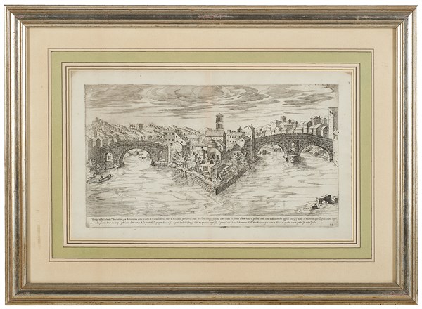 "Lot comprising three engravings, from Etienne Duperac's drawings in "Vestigi delle antichità di Roma, Tivoli, Pozzuolo et altri luochi", printed in Praga in 1606"