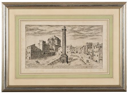 Lotto composto da tre incisioni a bulino, da disegni di Etienne Duperac, provenienti dall'opera "Vestigi delle antichità di Roma, Tivoli, Puzzuolo et altri luochi", stampata a Praga nel 1606"