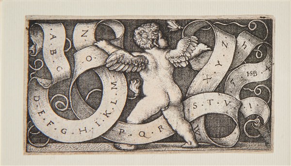 Hans Sebald Beham "Il genio dell'alfabeto" bulino (mm 43x79) al verso timbro di