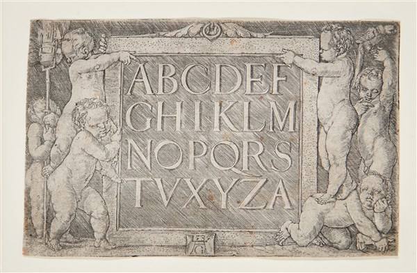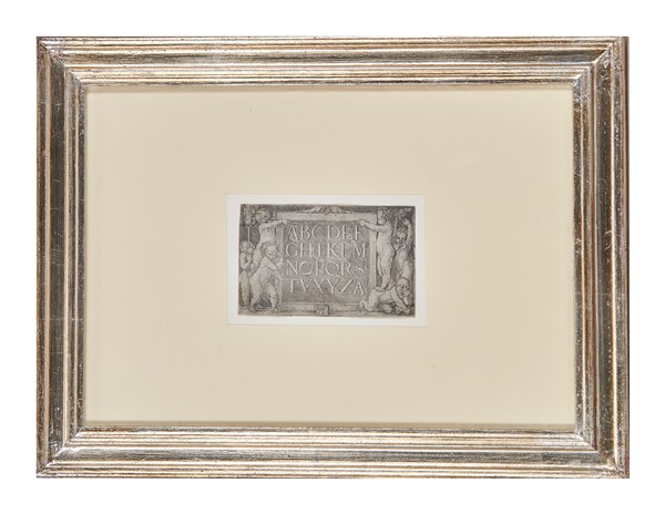 Heinrich Aldegrever "Pannello ornamentale con alfabeto latino" xilografia (mm 75
