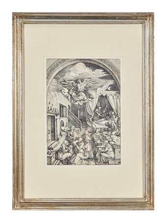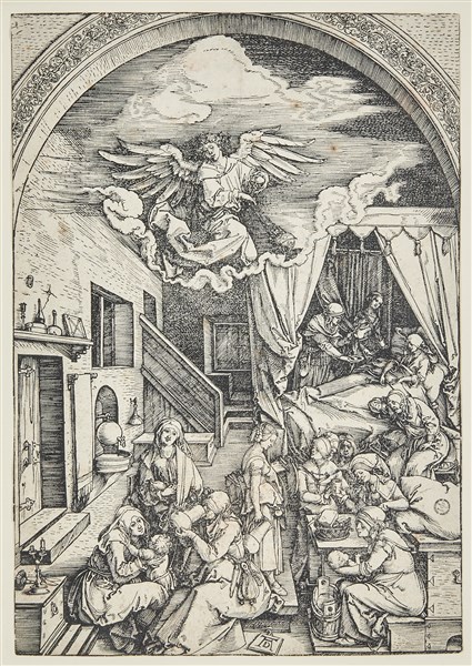 Albrecht Durer "La nascita della Vergine", dalla serie "Vita della Vergine" xilo