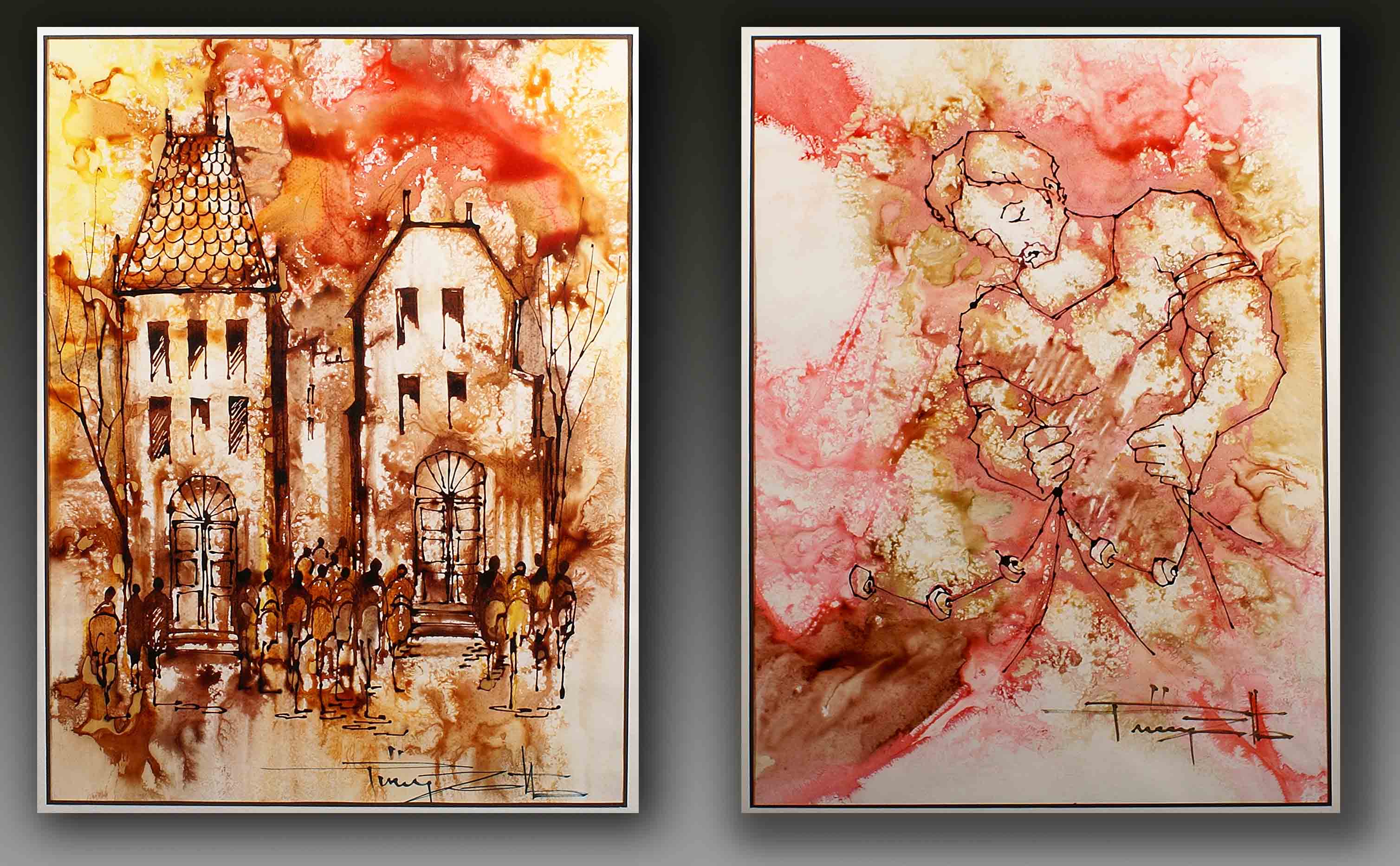 Mario Pinizzotto (Roma 1929), "Senza titolo", coppia di acquarelli, cm. 70x50, firmati in basso a destra.