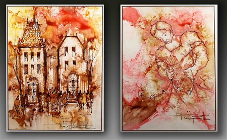 Mario Pinizzotto (Roma 1929), "Senza titolo", coppia di acquarelli, cm....