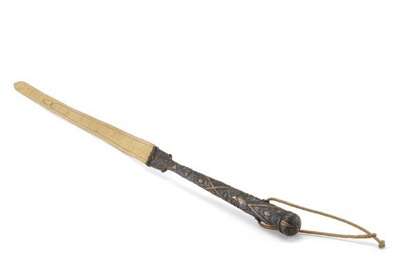 Frustino "rebenque" da parata in argento sbalzato con dettagli dorati. Punzoni di difficile lettura (L. cm 31) (lievi difetti)