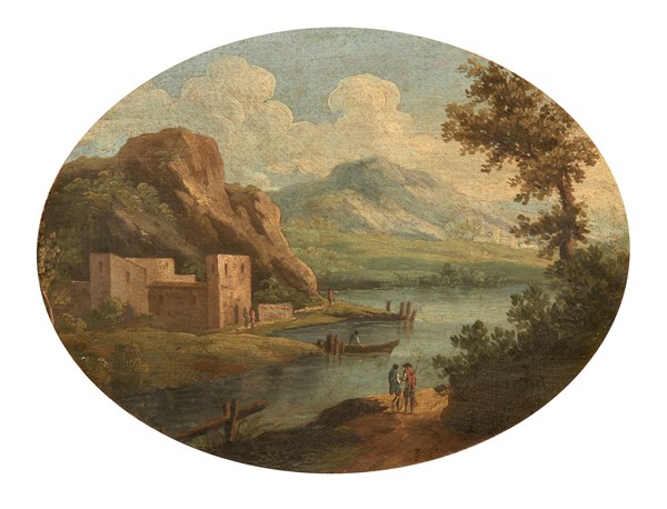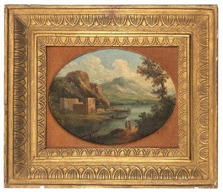 Ambito di Paolo Anesi (Roma 1697-1773) "Paesaggio con figure" olio su tavola (