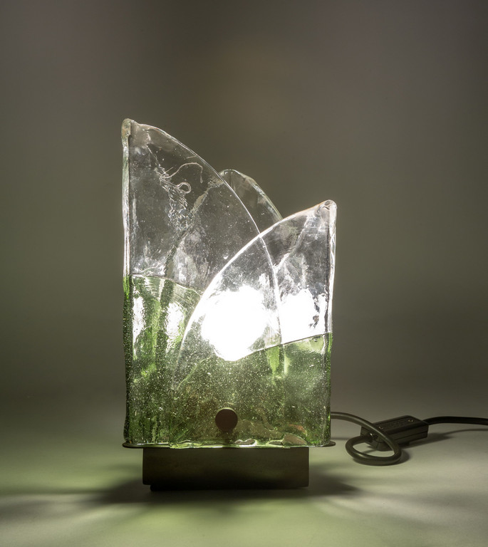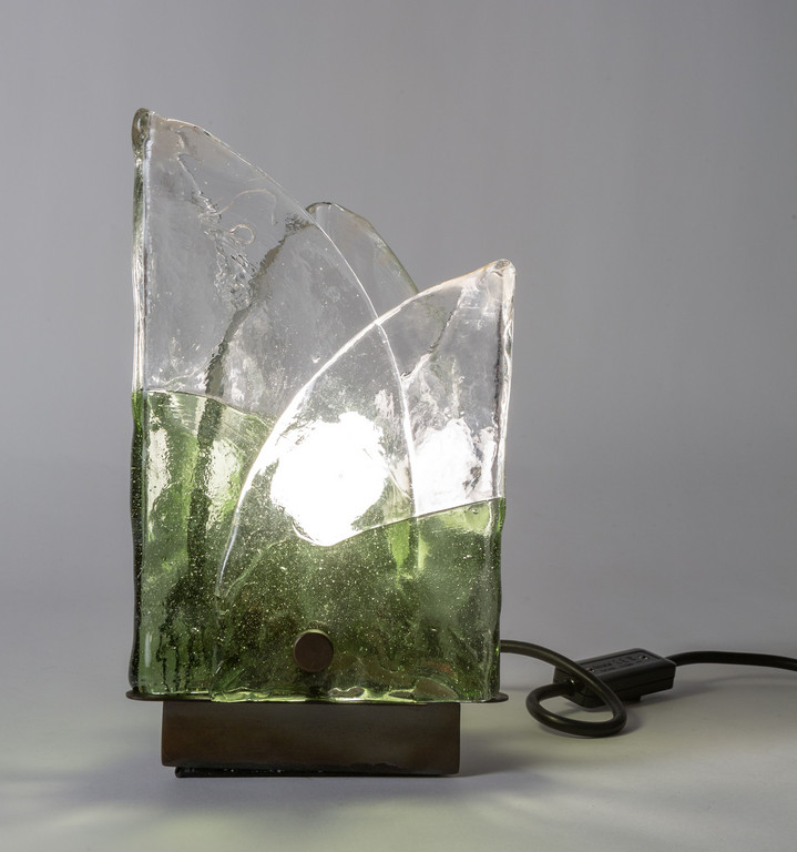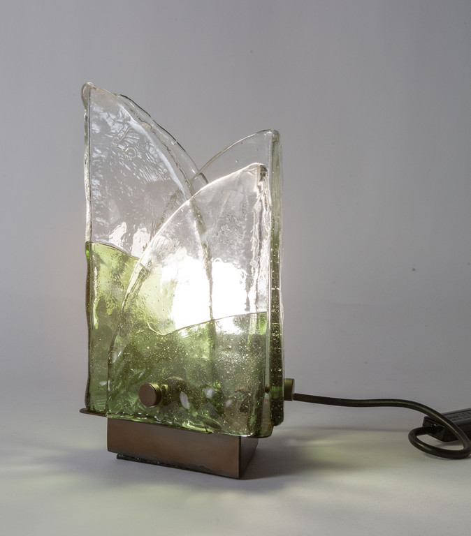 Piastre di cristallo opalino e verde piegate