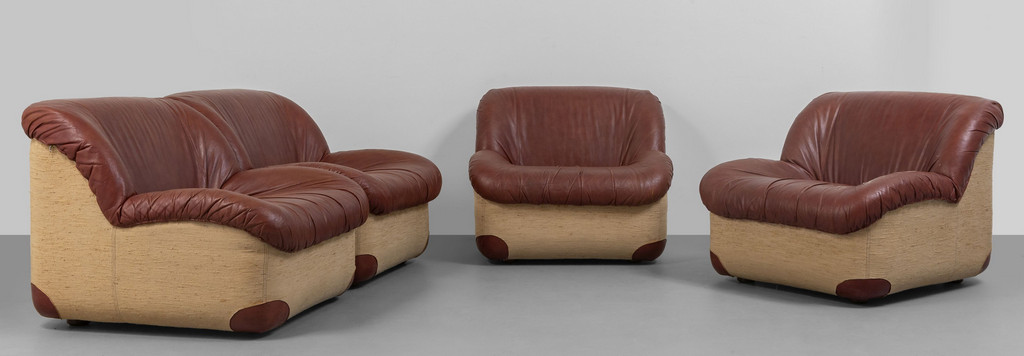 Strutture in legno imbottiture rivestite in pelle e tessuto.
