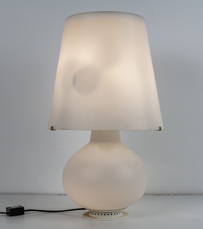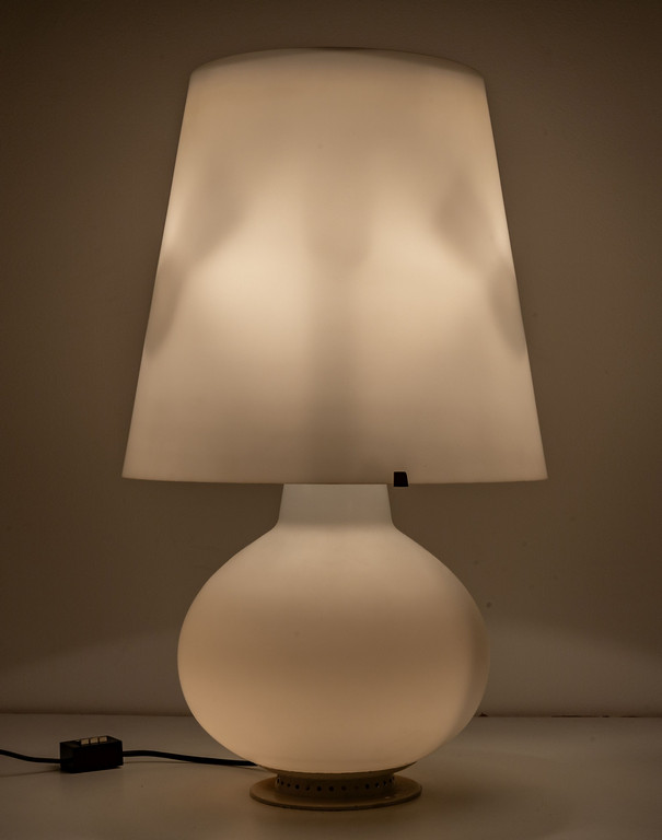 Base e diffusore di vetro opalino satinato metallo laccato.