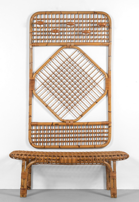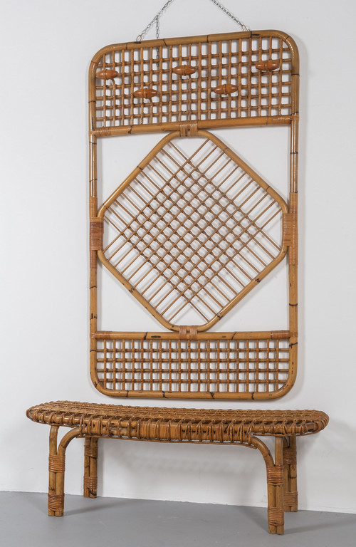 UN APPENDIABITI DA PARETE ED UNA PANCA anni '60.