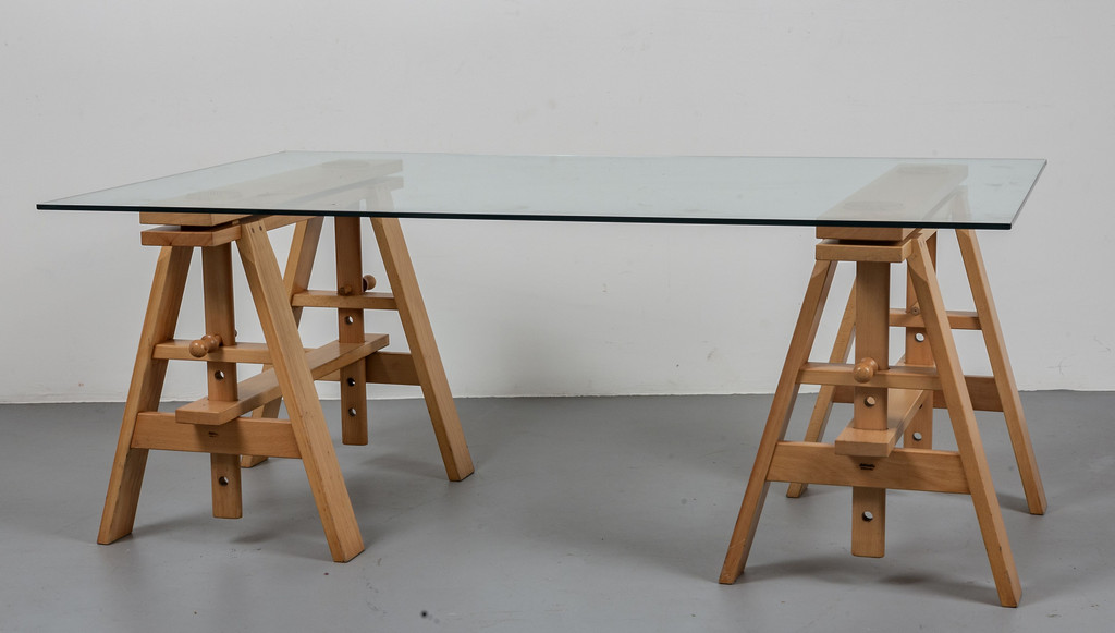 Legno di faggio altezza regolabile piano in cristallo.