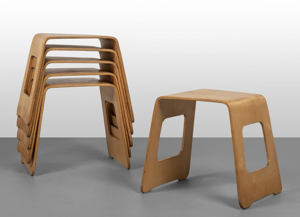 Sei sgabelli/tavolini impilabili 'Benjamin'.