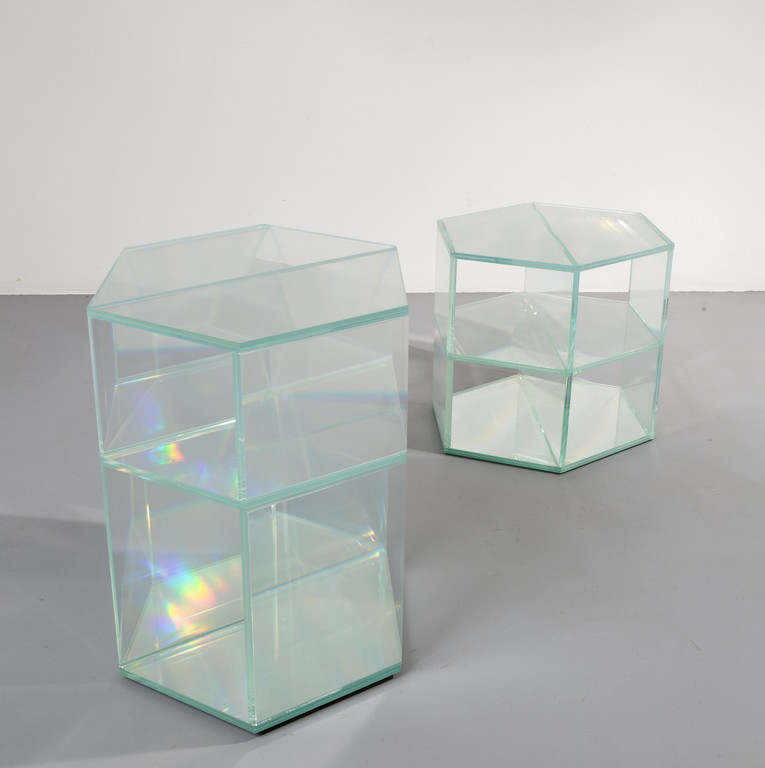 Cristallo stratificato ed incollato con interposto film multicromatico.