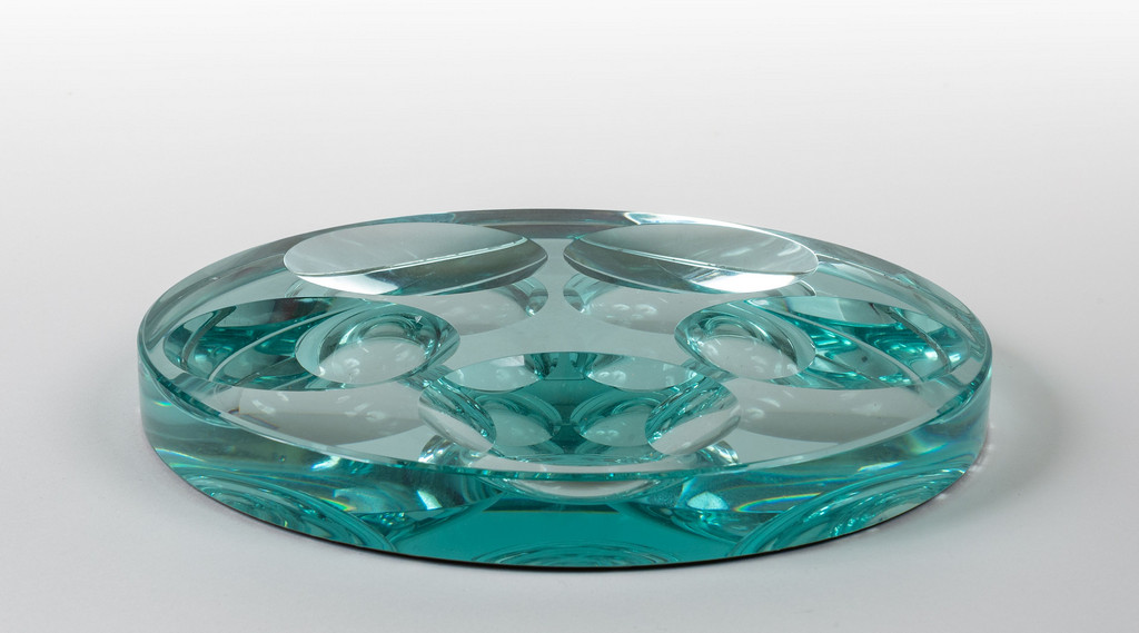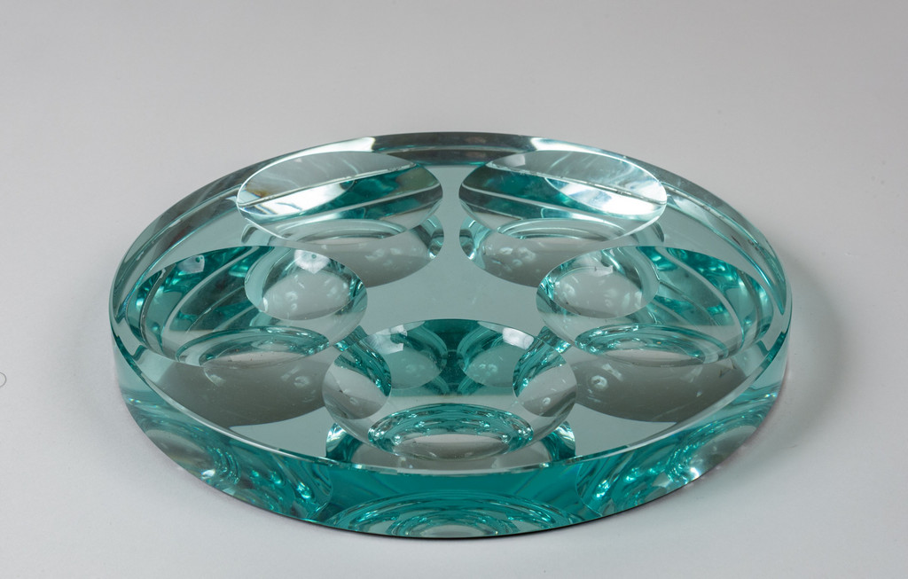 Cristallo colorato di forte spessore argentato e molato.