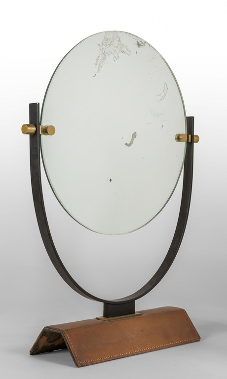 Lamierino di acciaio rivestito in cuoio ottone ferro verniciato cristallo argentato.