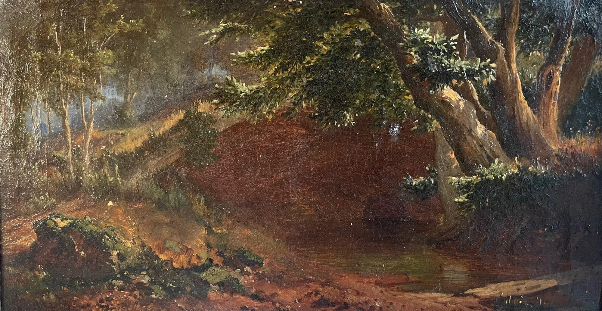 Carlo Pittara (1836 - 1890) Paesaggio boschivo olio su tela 23 x 42 cm,...