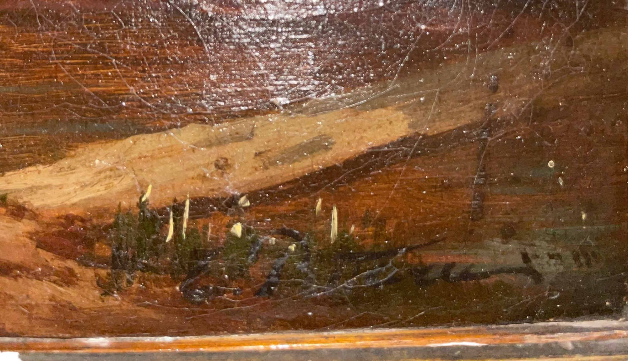 olio su tela 23 x 42 cm, firmato in basso a destra. l'opera presenta un piccolo foro al centro. In cornice.