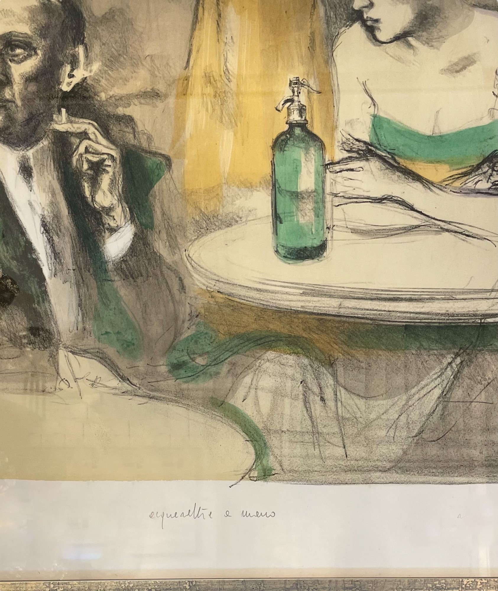 Alberto Sughi (1928, - 2012) Al Caffè litografia acquarellata a mano 85 x...