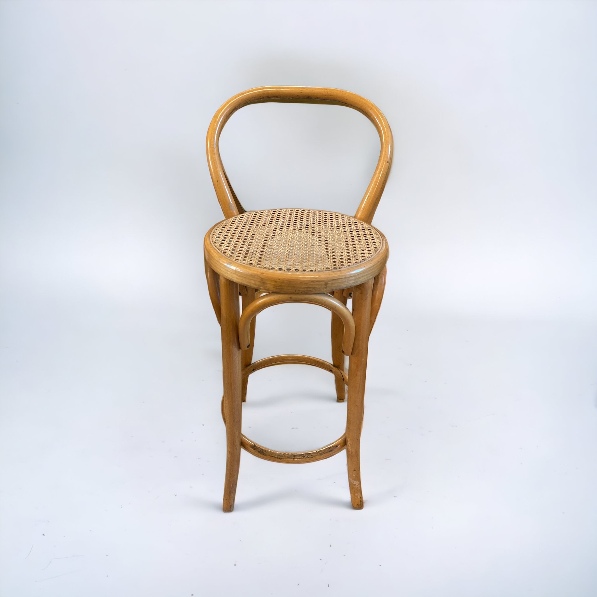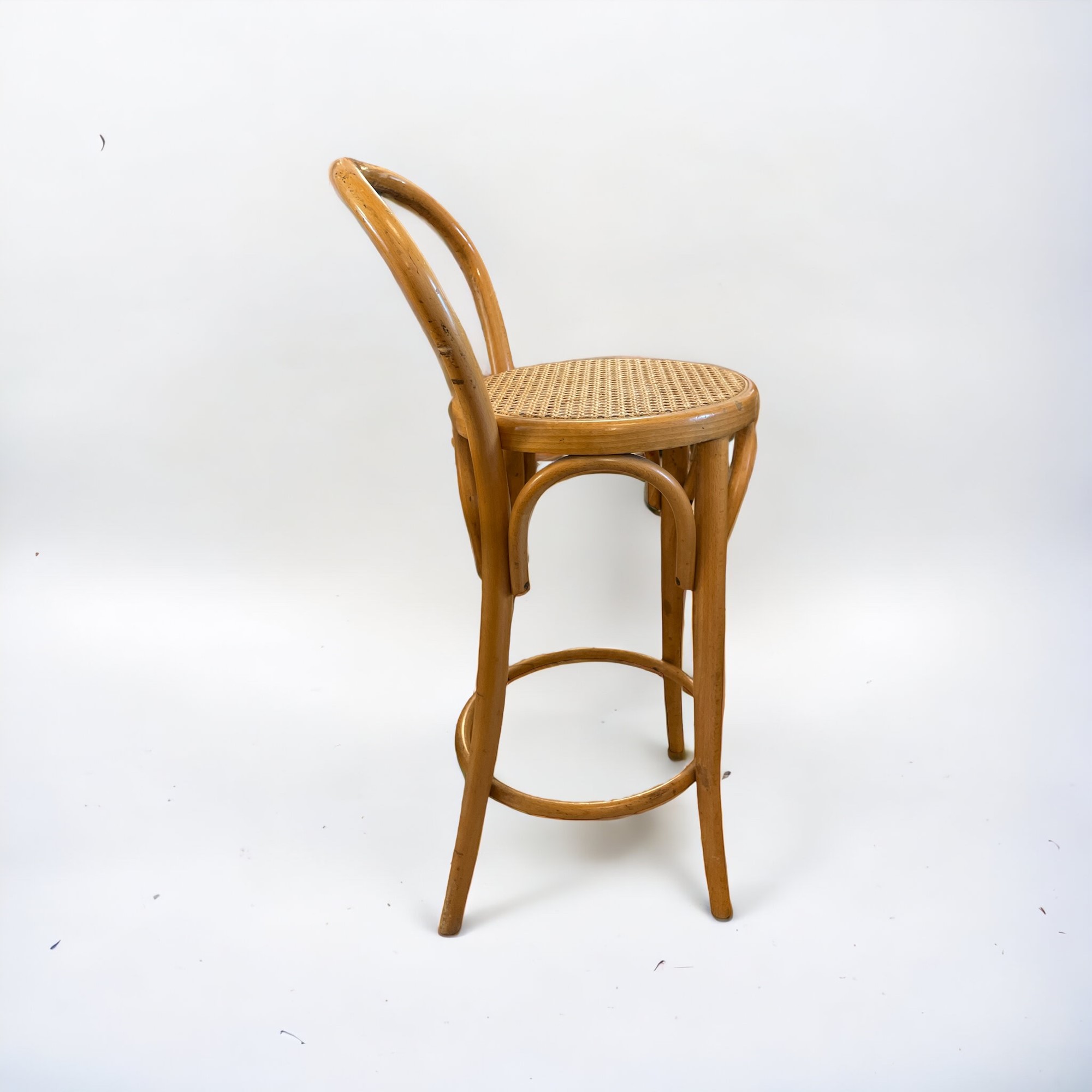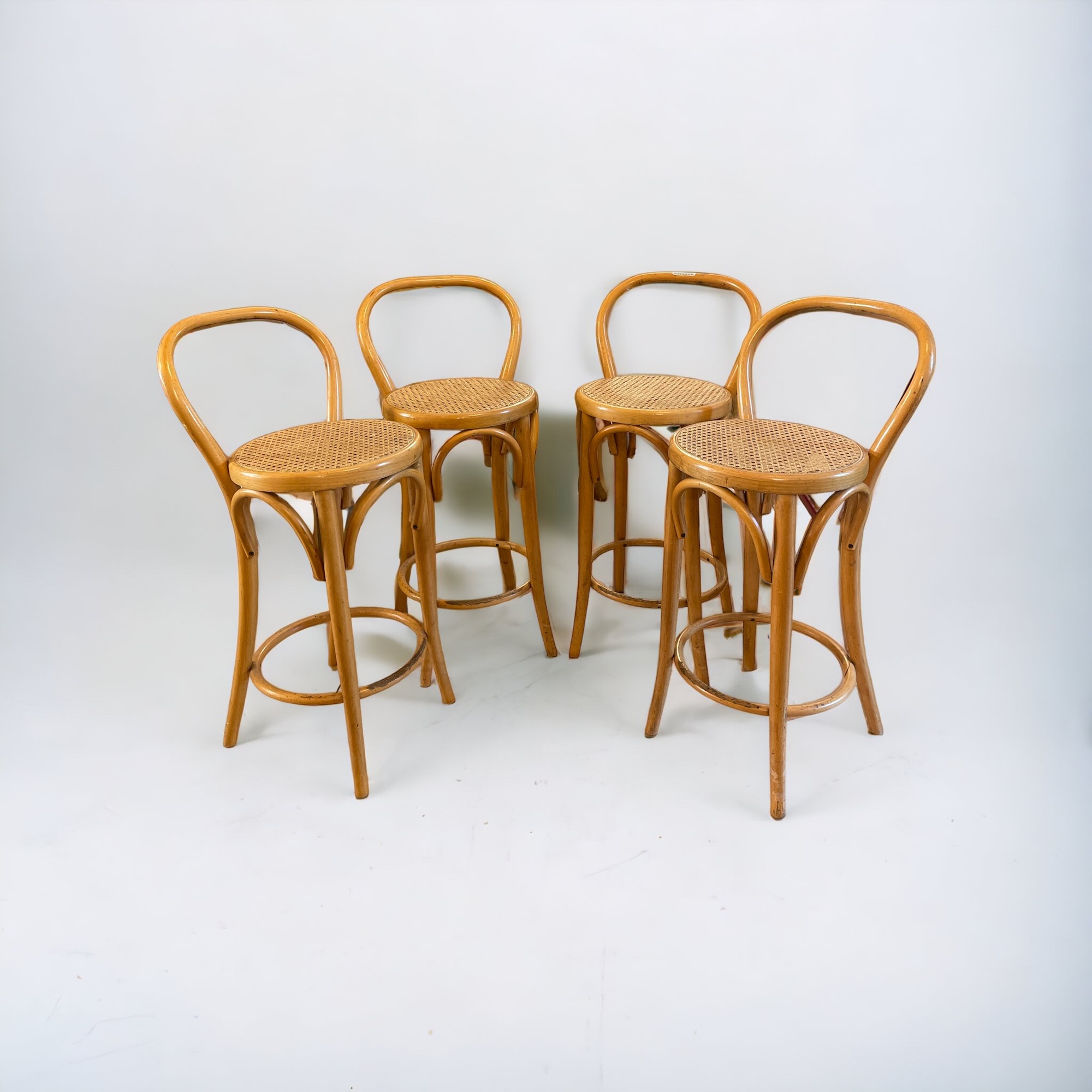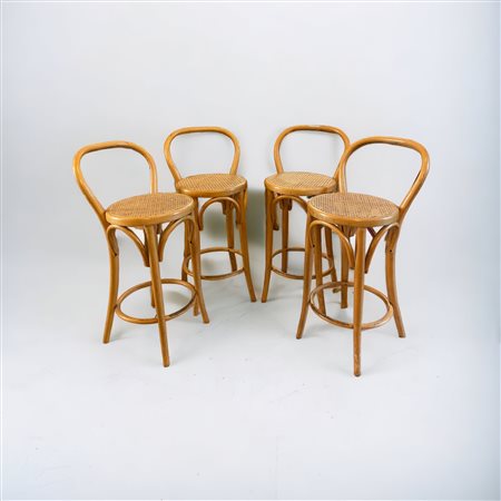 4 sgabelli in stile Thonet H. 89 cm. In legno di faggio e paglia di Vienna.