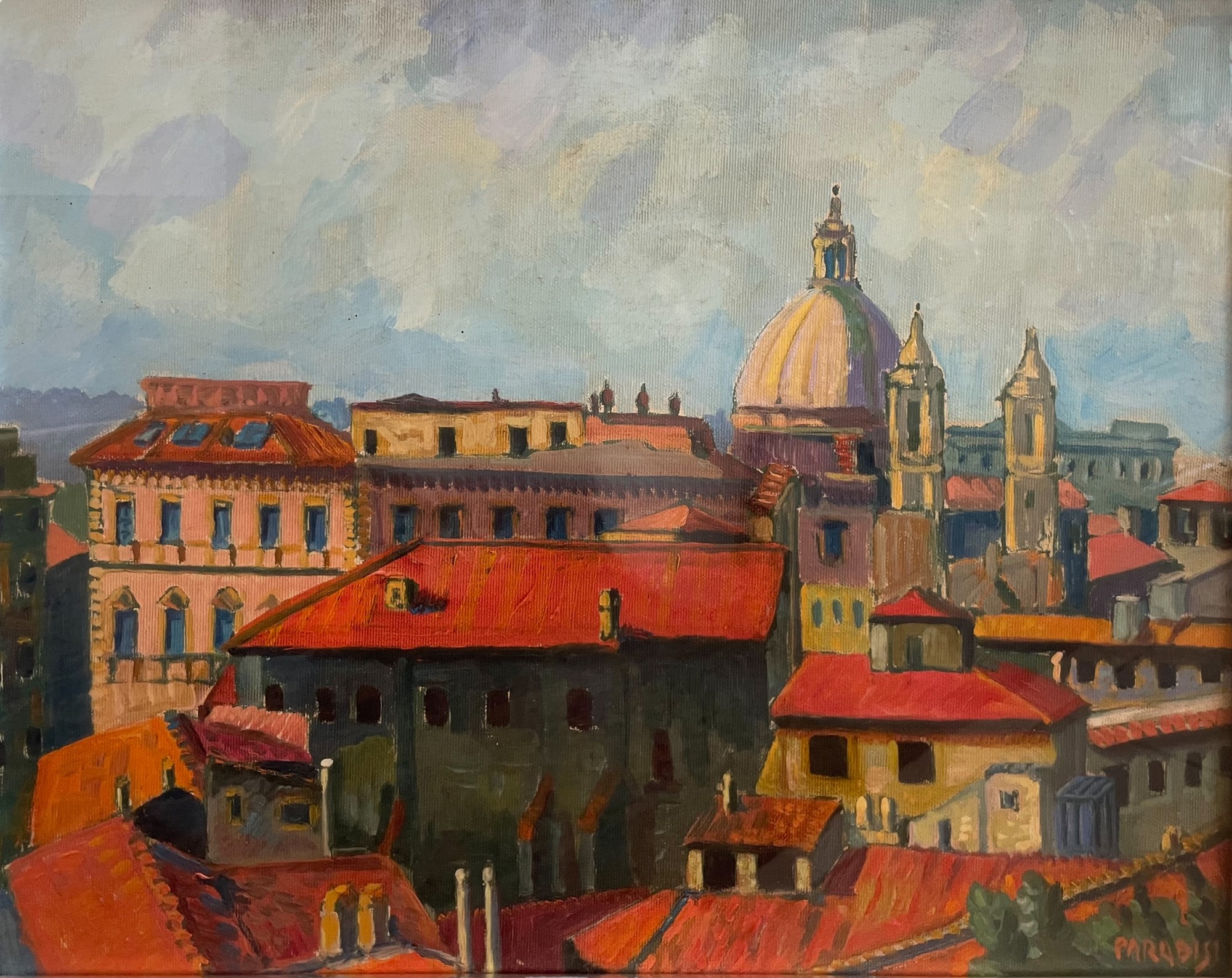 Vittorio Paridisi (1934 - ) Tetti romani 1991 olio su tela 40 x 50 cm....