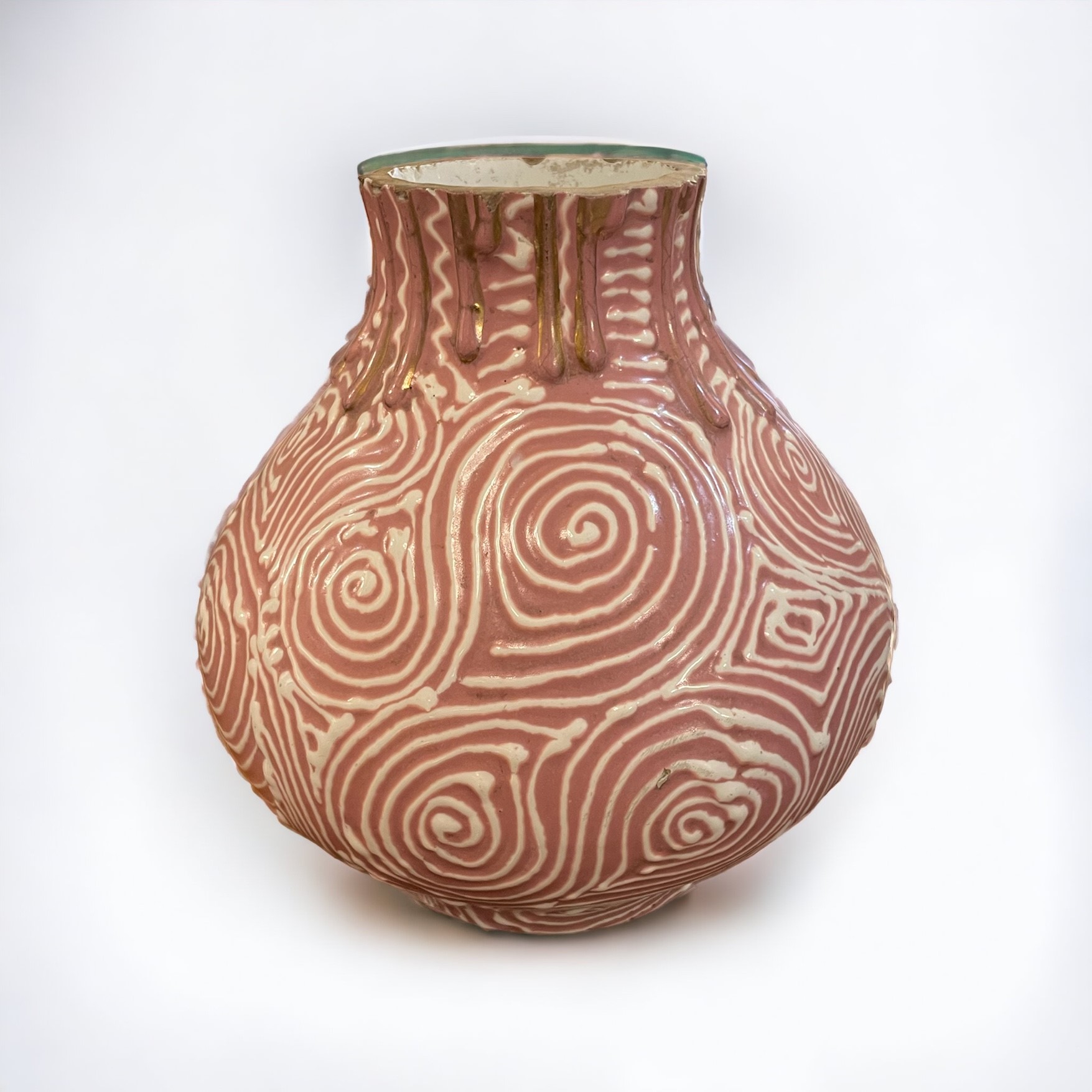 Vaso centrotavola - Ars Deruta ceramica smaltata 20 x 10,50 cm. Firma dipinta...