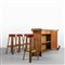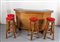 Stools: bamboo rattan upholstered cushions covered in fabric.