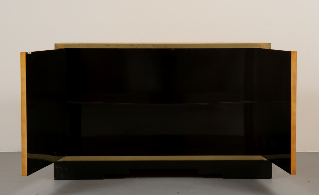 Legno impiallacciato in acero legno laccato ottone madreperla.