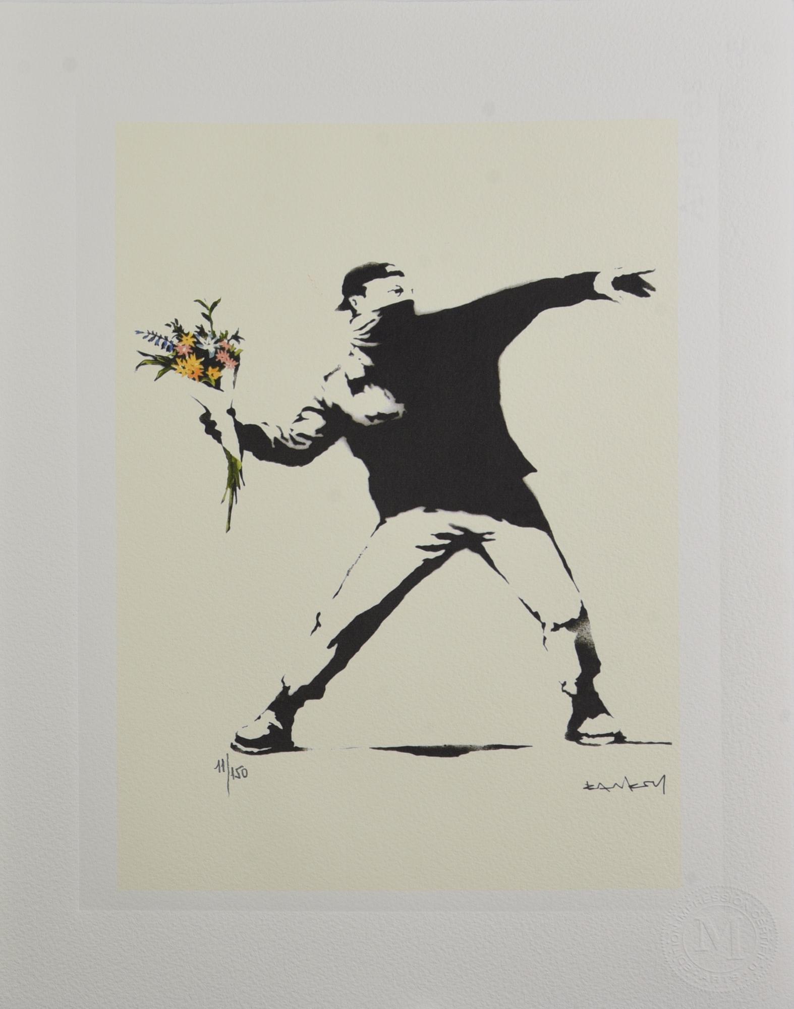 Da Banksy LOVE IS IN THE AIR (CREAM EDITION) eliografia su carta Arches, cm...