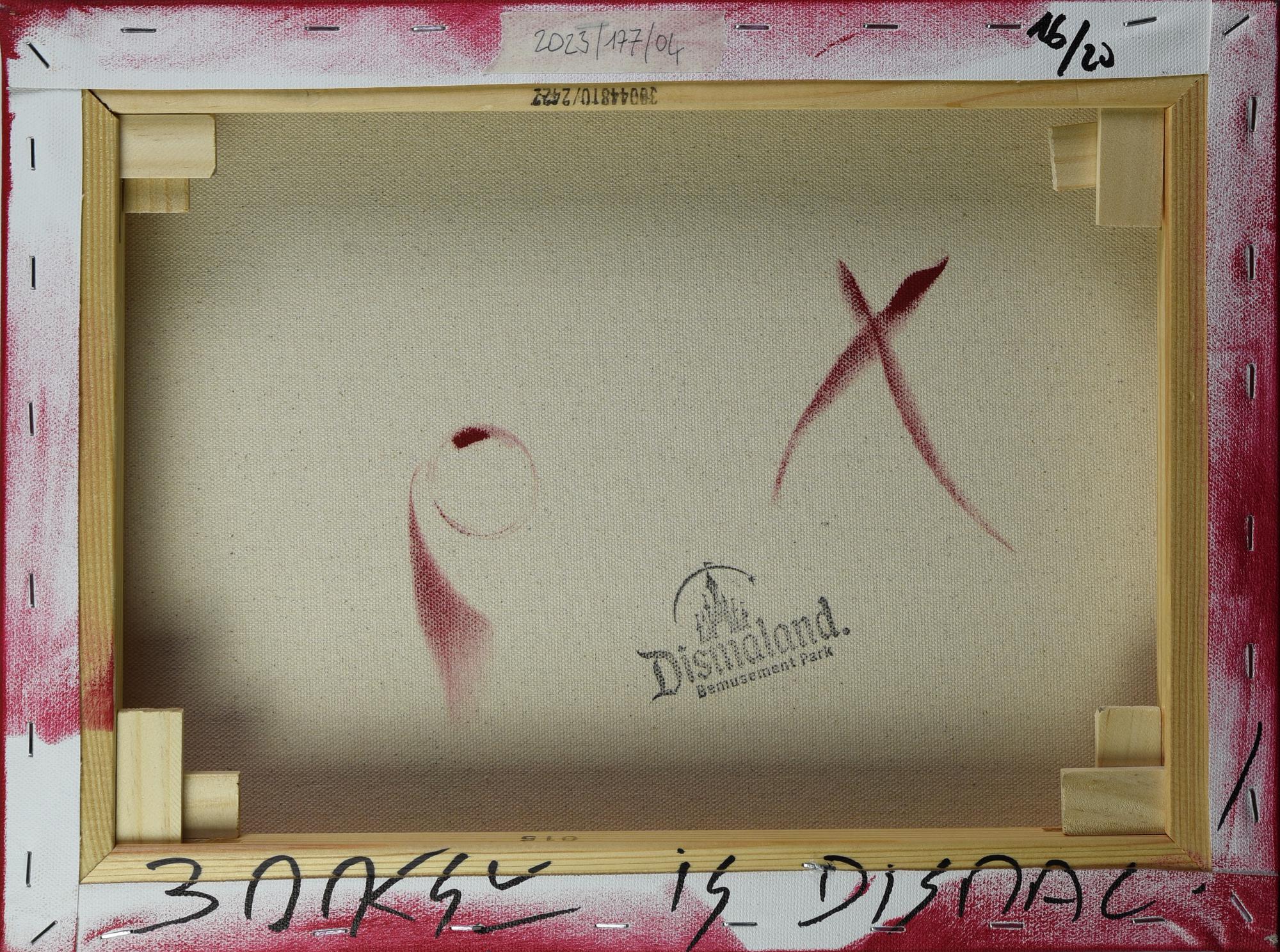 sul retro: tiratura, timbro Dismaland e iscritto "Banksy is Dismal!"