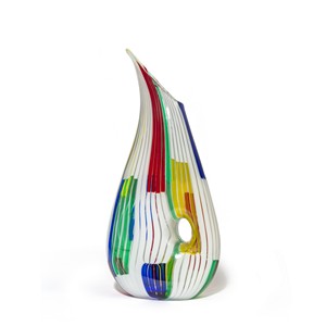 Un vaso della serie 'bandiere' in vetro a canne colorate.